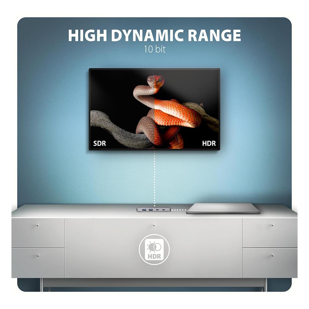 • Support for 2-channel audio sampling rate up to 192 kHz and up to 24-bit audio - depends on source and end device, i.e. laptop/phone and TV/monitor/AV receiver.