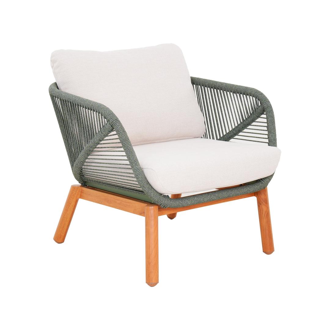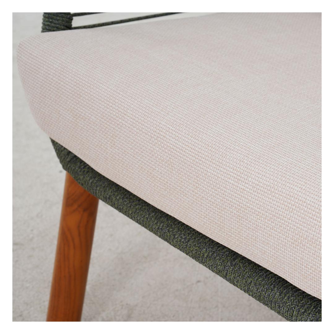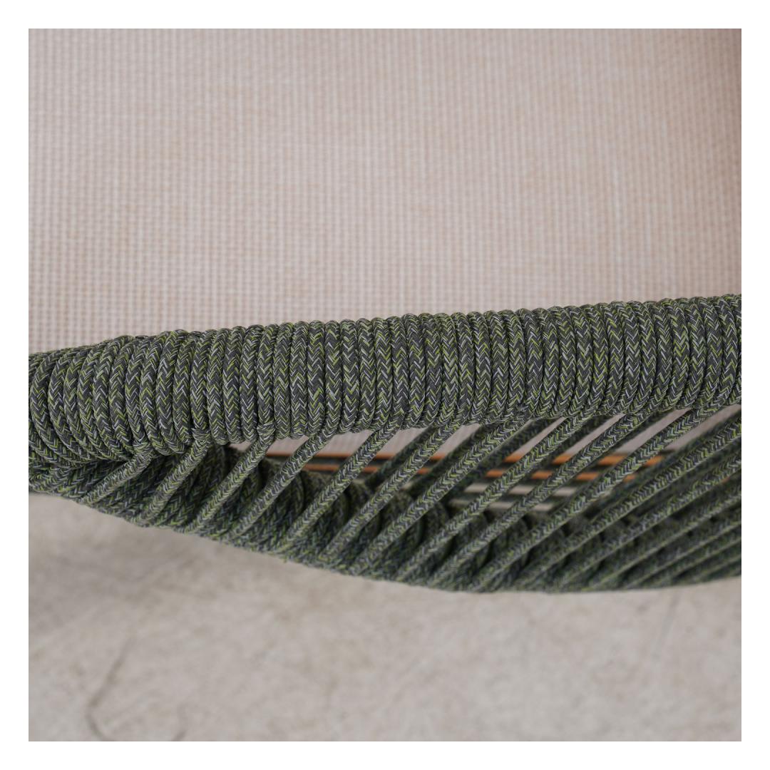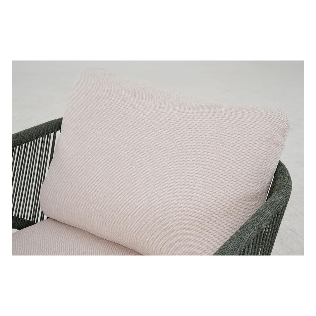 The backrests of the sofa and chairs are decorated with green rope weaving.
