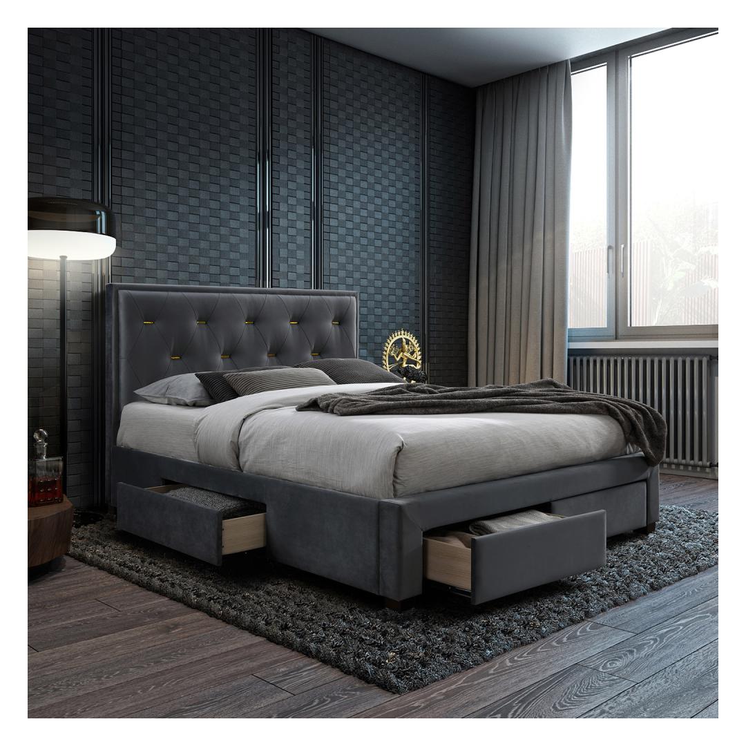 Bed GLOSSY 160x200cm, with mattress HARMONY DELUX, grey