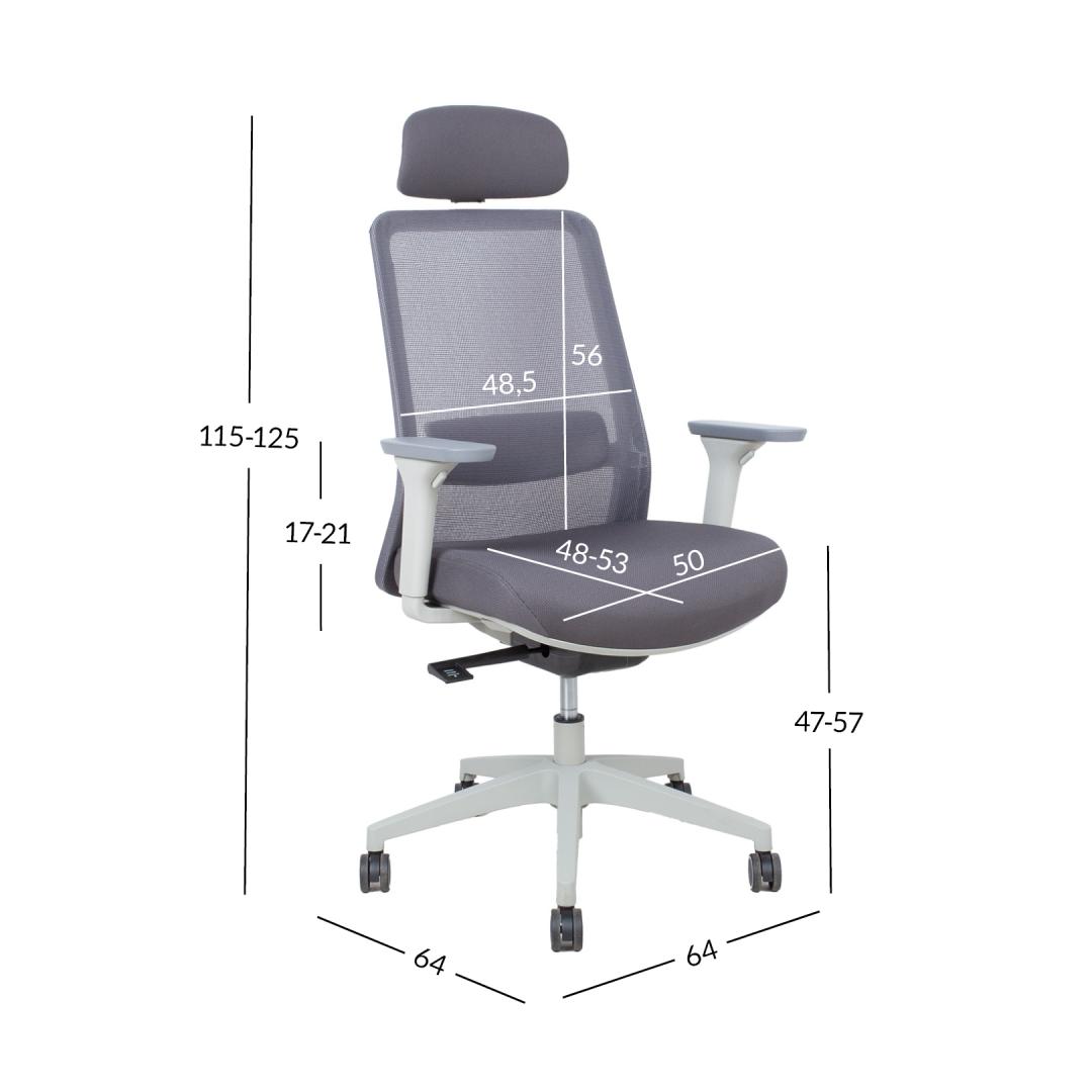 Armrests: grey plastic. height adjustable between 17-21cm. The depth and angle of rotation of the armrests are adjustable.