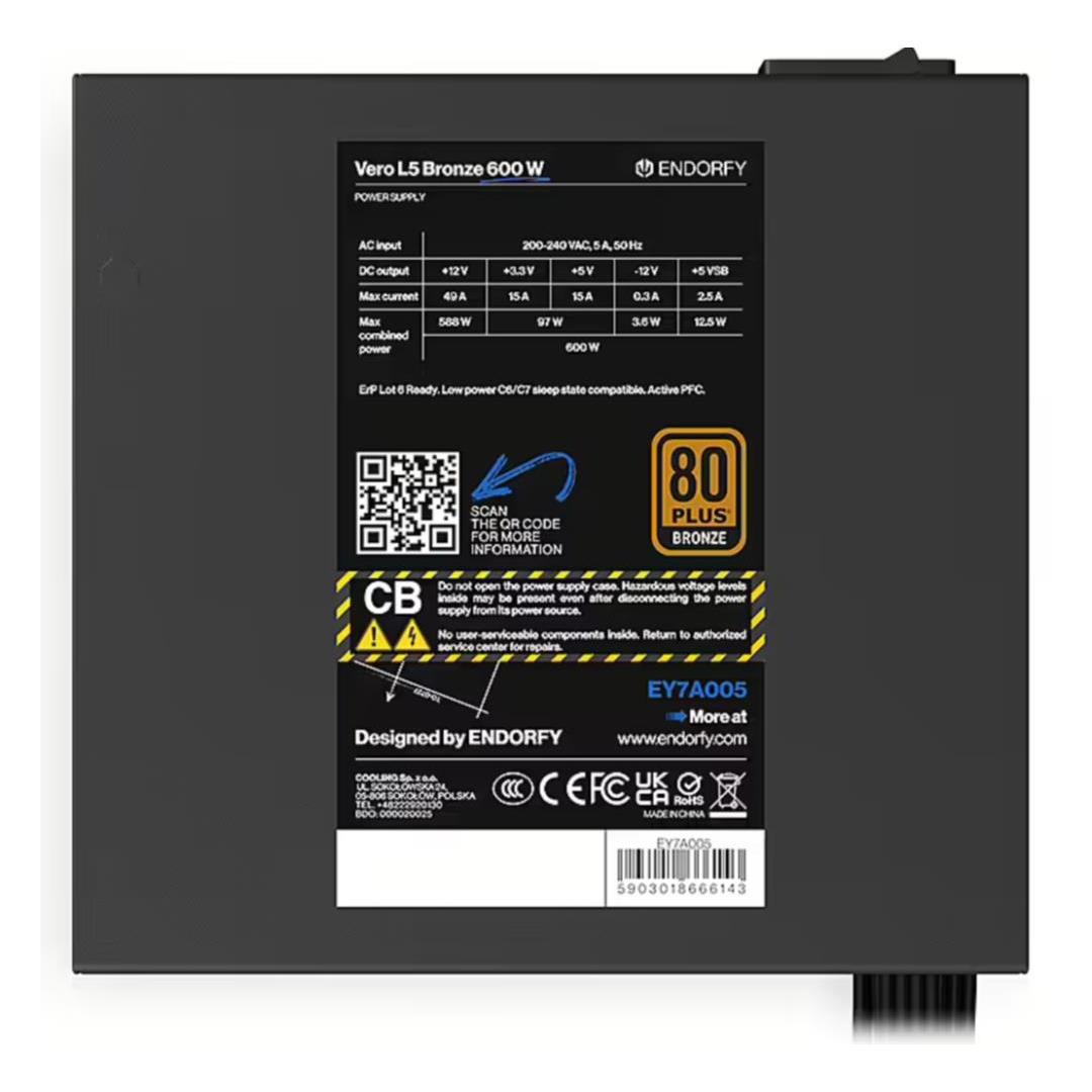 It's a stable power supply with DC-DC converters to regulate voltages and deliver 500 W of continuous power. With Taiwanese Teapo electrolytic and aluminum-polymer capacitors inside, the Vero L5 Bronze 600 W can operate at temperatures up to 1050C. No wonder this bad boy is 80 PLUS® Bronze certified.