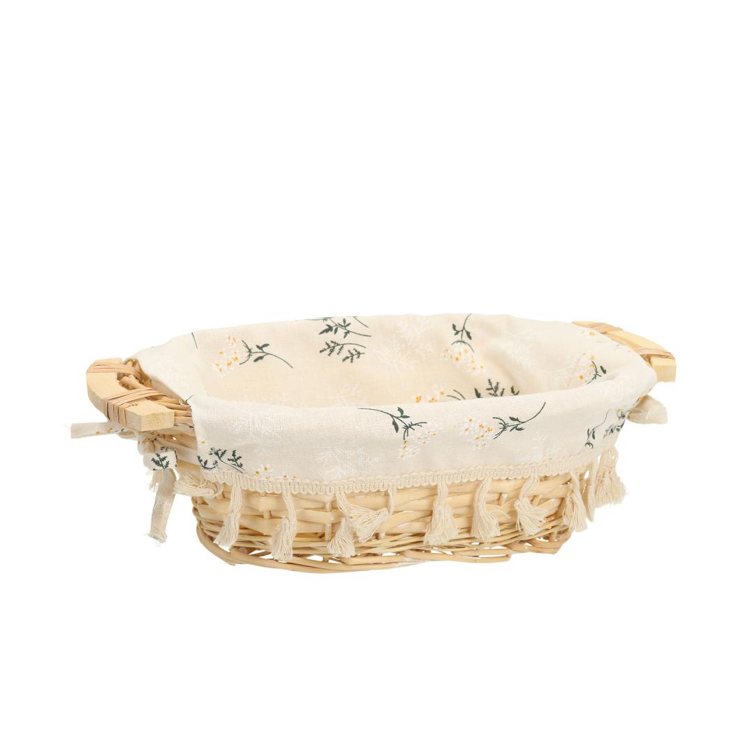Textile lining: cotton floral fabric. Korvi materjal: käsitsi punutud naturaalne pajuvits.