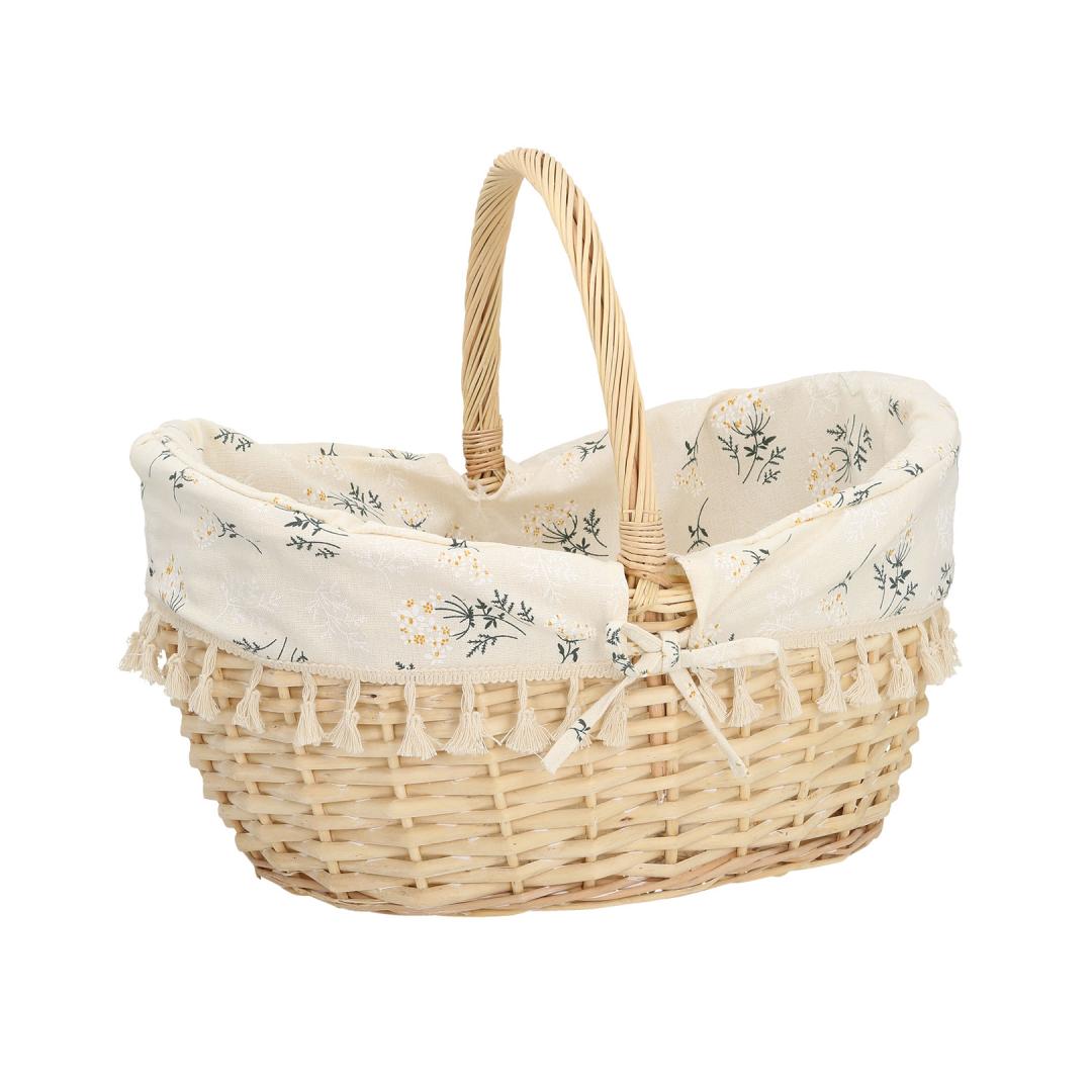 Textile lining: cotton floral fabric. Korvi materjal: käsitsi punutud naturaalne pajuvits.