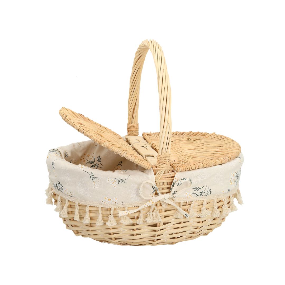 Textile lining: cotton floral fabric. Korvi materjal: käsitsi punutud naturaalne pajuvits.