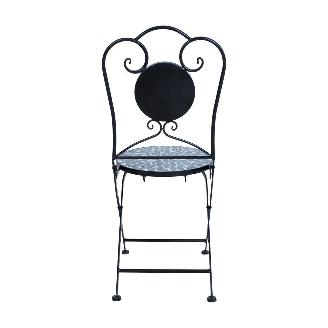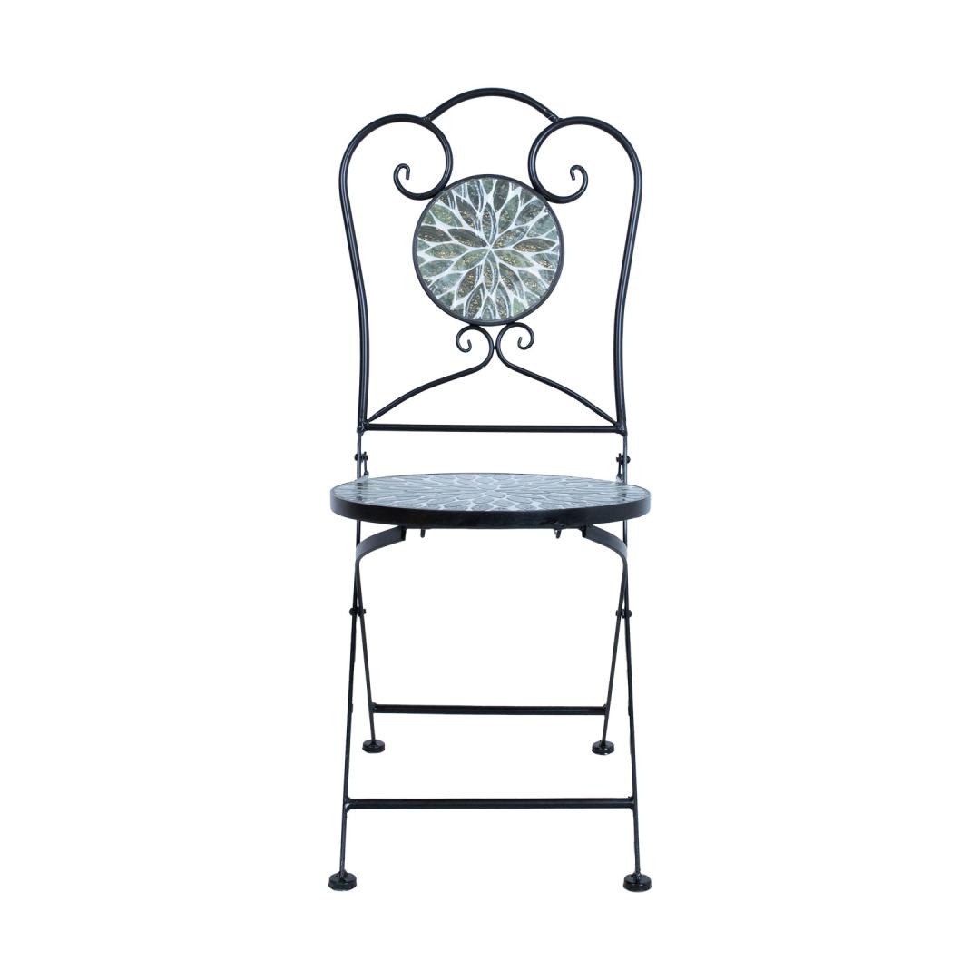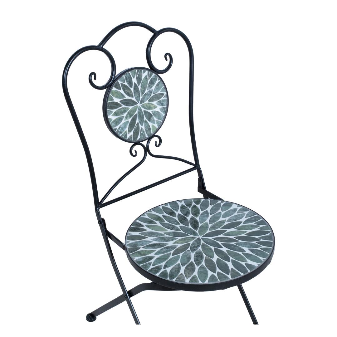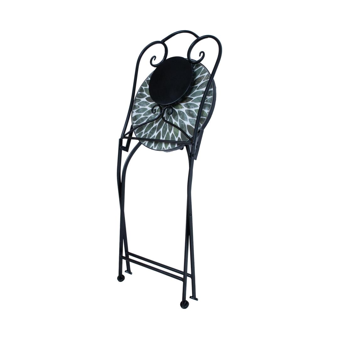 Seat and backrest of the chair: ceramic tile with green leaf motifs.