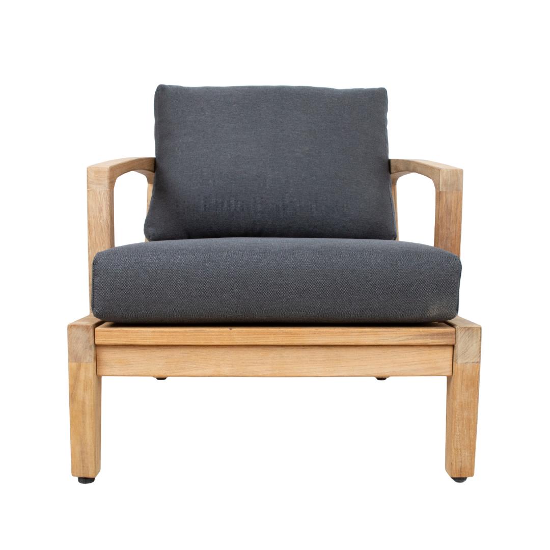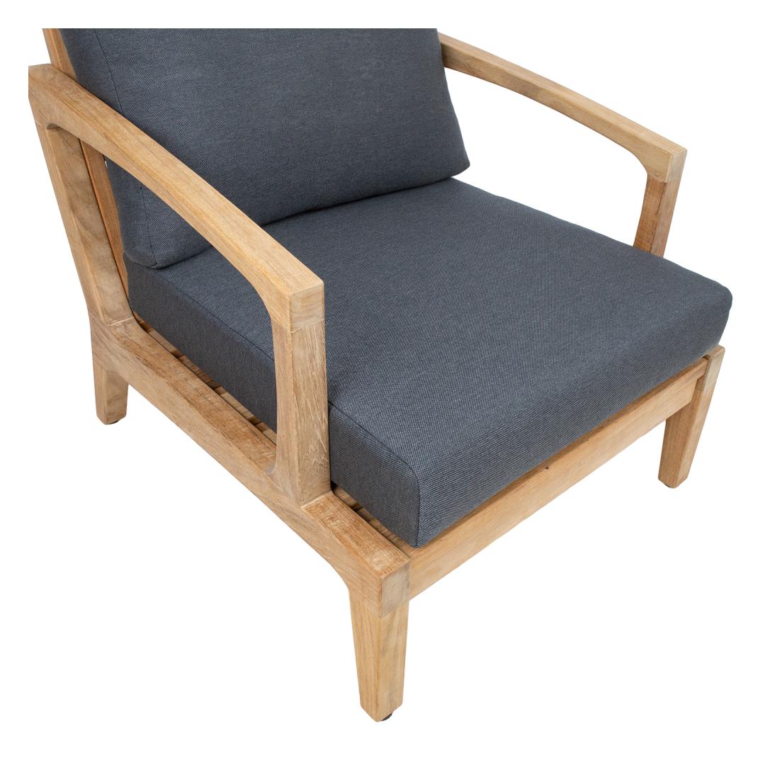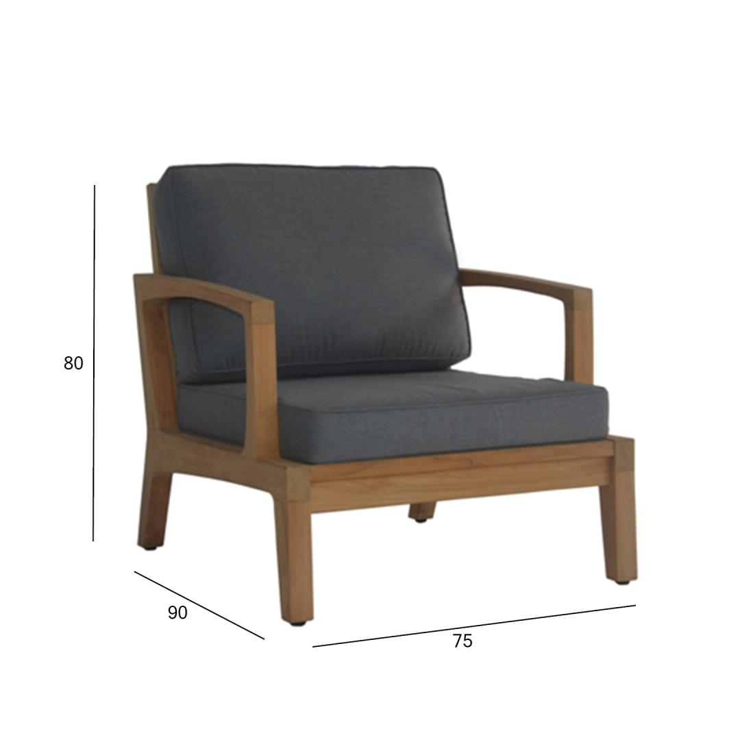 Armchair MALDIVE 75x90xH80cm, teak wood. The exclusive teak wood series MALDIVE is a great choice for even the most demanding tastes and is suitable for both outdoor and indoor use. The sofa frame is made of carefully selected mature teak wood. The finely sanded surface of the wood is completely natural. Due to the high content of natural oils, teak is very resistant to moisture and wood pests and does not require additional treatment. Teak wood tolerates various weather conditions very well and retains its excellent appearance and best properties for many years. The more mature the wood, the higher its density and oil content, and the more durable and stable it is to weather conditions. Under the influence of sunlight and moisture, the surface of the wood turns beautifully silver-gray over time. This color change is natural and does not affect the quality of the wood. The height of the armchair seat is 30/43cm. The armchair comes with a removable seat cushion 66x71xH13cm and a backrest cushion 66x48x16cm. Cushion covers are made of brown polyester fabric. MAINTENANCE: clean the furniture regularly, protect it from excessive moisture and UV radiation. To refresh the wooden surfaces, they can be lightly sanded if desired. To prolong the lifespan of outdoor furniture, we recommend the use of outdoor furniture covers. STORAGE: at the end of the summer season, we recommend storing the garden furniture indoors. Clean and dry the furniture before storing. Use a dry, well-ventilated room for storage. Tugitool MALDIVE - hoolikalt valitud eksklusiivsed materjalid, maitsekas värvikombinatsioon ja ajatu disain. Tooli raam on valmistatud tiigipuust. Kõik puidust osad on peenlihvitud ja õlitamata. Eemaldatavad, pehmed istmepadjad on kaetud polüesterkangaga. Toode on muutlikes ilmastikutingimustes hästi vastupidav ja lihtsalt hooldatav. Kaitset ilmastikuolude eest vajavad ainult padjad. Hea lahendus patjade igapäevaseks hoiustamiseks ja kuivana hoidmiseks on padjakast. Välitingimustes kasutatava mööbli eluea pikendamiseks soovitame kasutada välimööbli katteid. HOOLDUS: puhastage mööblit regulaarselt, kaitske liigniiskuse ja UV kiirguse eest. Kerge lihvimine korra aastas on piisav värskenduskuur puidust pindadele jälle uue näo andmiseks. Välitingimustes kasutatava mööbli eluea pikendamiseks soovitame kasutada välimööbli katteid. HOIUSTAMINE: suvehooaja lõppedes soovitame aiamööblit hoiustada siseruumides. Puhastage ja kuivatage mööbel enne hoiule panekut. Kasutage hoiustamiseks jahedat, kuiva ning hea ventilatsiooniga ruumi.
