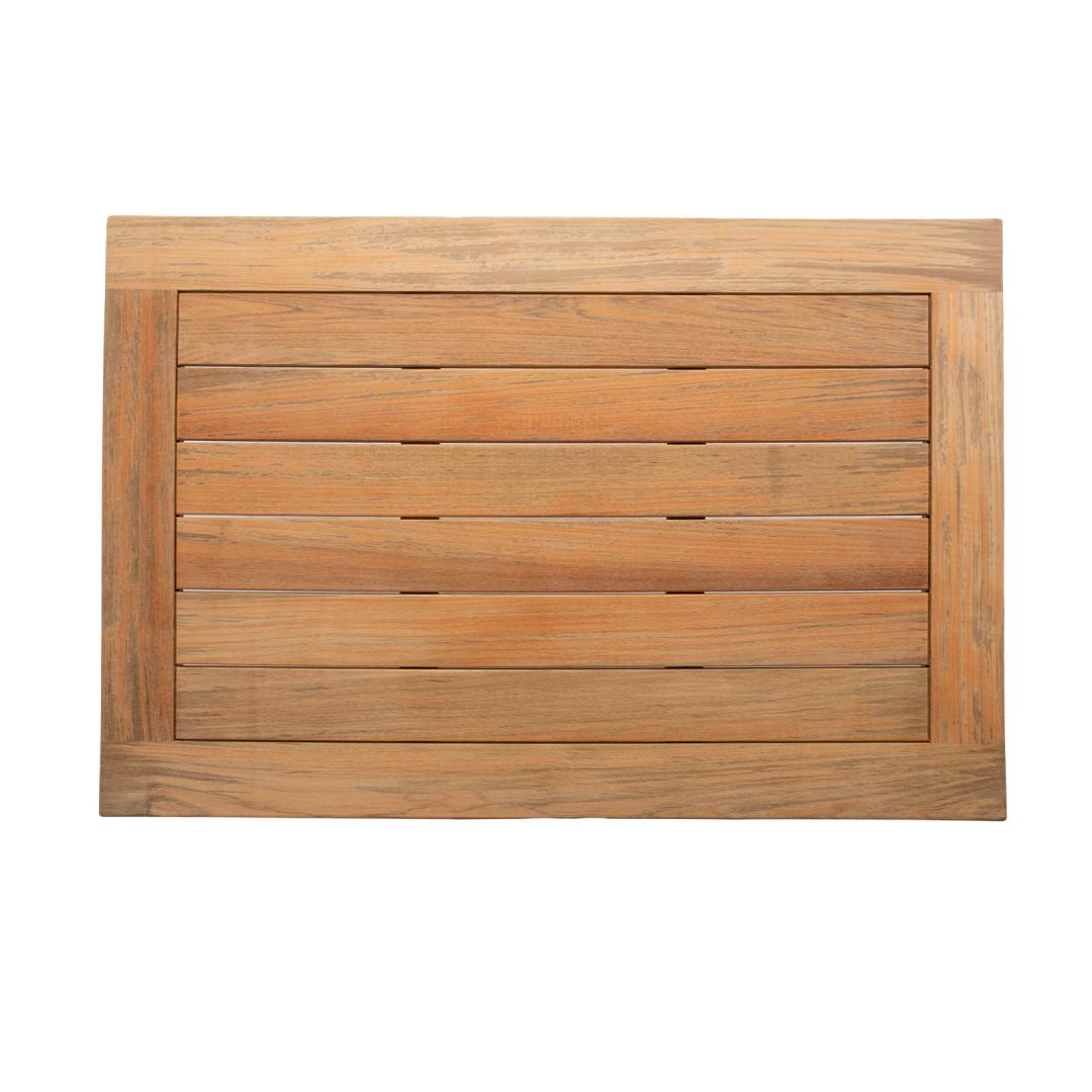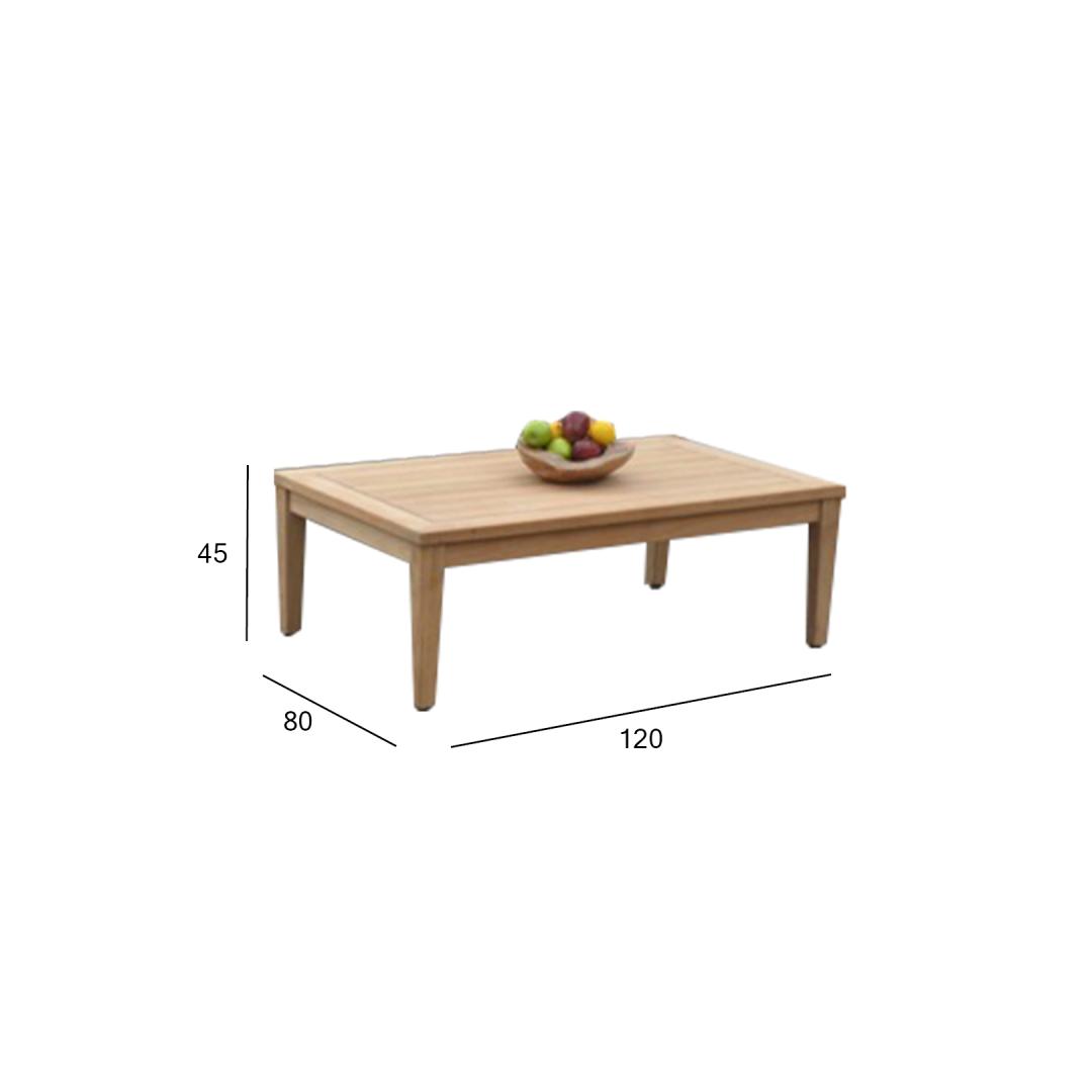 Coffee table MALDIVE 120x80xH45cm, teak. The exclusive teak wood series MALDIVE is a great choice for even the most demanding tastes and is suitable for both outdoor and indoor use. The table is made of carefully selected mature teak wood. The finely sanded surface of the wood is completely natural. Due to the high content of natural oils, teak is very resistant to moisture and wood pests and does not require additional treatment. Teak wood tolerates various weather conditions very well and retains its excellent appearance and best properties for many years. The more mature the wood, the higher its density and oil content, and the more durable and stable it is to weather conditions. Under the influence of sunlight and moisture, the surface of the wood turns beautifully silver-gray over time. This color change is natural and does not affect the quality of the wood. MAINTENANCE: clean the furniture regularly, protect it from excessive moisture and UV radiation. To refresh the wooden surfaces, they can be lightly sanded if desired. To prolong the lifespan of outdoor furniture, we recommend the use of outdoor furniture covers. STORAGE: at the end of the summer season, we recommend storing the garden furniture indoors. Clean and dry the furniture before storing. Use a dry, well-ventilated room for storage. Diivanilaud MALDIVE on suurepärane valik ka kõige nõudlikumale kliendile. Ajatu disain, eksklusiivne materjal ja meisterlik teostus on kindlustanud suurepärase tulemuse. Laud on valmistatud hoolikalt valitud küpsest tiikpuust. Mida vanem on puit, seda suurem on selle tihedus ja õli sisaldus ja seda vastupidavam ja stabiilsem on see ka ilmastikutingimuste suhtes. Puidu pind on täielikult naturaalne ja ainult peenlihvitud. Tänu materjali loomulikele omadustele see täiendavat viimistlemist või õlitamist ei vaja. HOOLDUS: puit on elav looduslik materjal, mille välisilme ilmastikutingimuste mõjul muutub. puhastage mööblit regulaarselt, kaitske liigniiskuse ja UV kiirguse eest. Kerge lihvimine korra aastas on piisav värskenduskuur puidust pindadele jälle uue näo andmiseks. Välitingimustes kasutatava mööbli eluea pikendamiseks soovitame kasutada välimööbli katteid. HOIUSTAMINE: suvehooaja lõppedes soovitame aiamööblit hoiustada siseruumides. Puhastage ja kuivatage mööbel enne hoiule panekut. Kasutage hoiustamiseks jahedat, kuiva ning hea ventilatsiooniga ruumi.