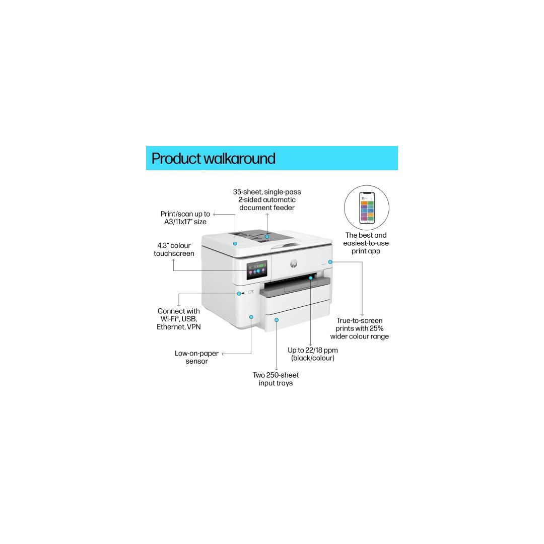 HP OfficeJet Pro 9730e Printer Inkjet Colour MFP A3 22 ppm USB Wi-Fi Ethernet LAN