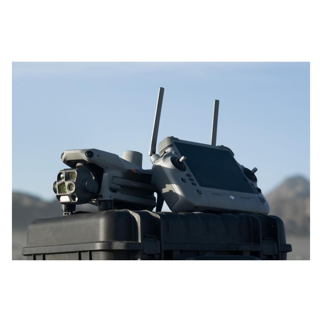 DJI RC Plus 2 Enterprise is equiped with a new high-bright display, ensuring clear visibility even under strong sunlight. The controller has an IP54 protection rating and operates in temperatures from -20°C to 50°C (-4°F to 122°F). With the powerful O4 Enterprise video transmission, a built-in high-gain antenna array, and support for both SDR and 4G hybrid transmission, it provides a stable and smooth video feed in both urban and mountainous environments.