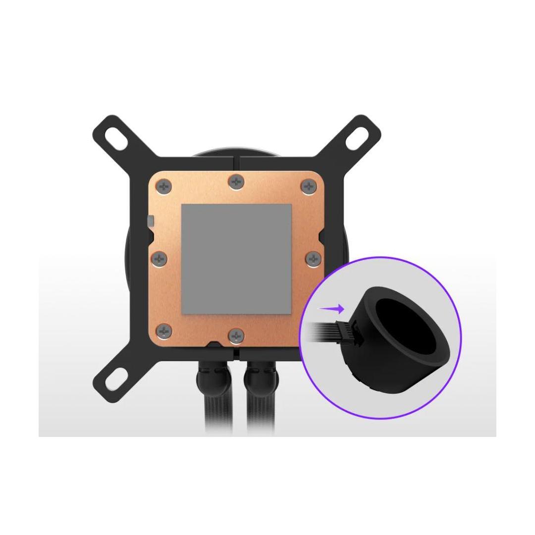 Optimized Cold Plate: The split-flow copper cold plate channels coolant to the CPU’s hottest areas for better heat transfer, lower temps, and more consistent thermal performance.