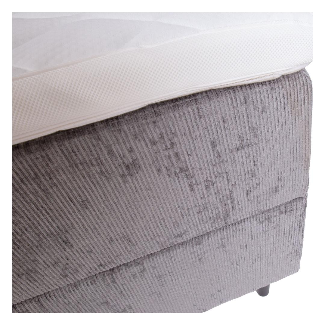 Voodi kattemadrats on poroloonist ja selle paksus on 7cm. Kattemadratsi all asub pocket-vedrustusega madrats. 210vedru/m2, vedru kõrgus 13cm. Madratsi jäikus: keskmine. Voodi raam on valmistatud puidust, puitlaast- ja puitkiudplaadist. Voodi all asub ruumikas panipaik. Voodijalad on valmistatud puidust, 14cm kõrged. Voodipeats on voodiga sama lai, selle paksus on 7cm, kõrgus 105cm. Ühenduselemendid on lisatud. Voodi on kaetud kangaga, 90 000 Martindale´i. Voodi kõrgus maast on 70cm. Toote mõõdud on 121x208xH119cm. Toode on valmistatud EL-is.