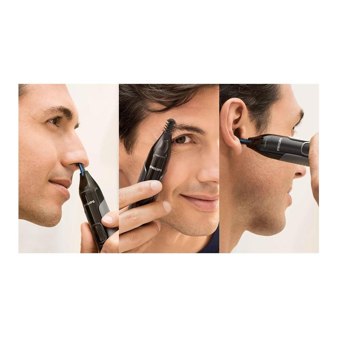 The Philips Series 3000 nose trimmer easily trims nose, ear and eyebrow hair. The new PrecisionTrim technology and Protective Guard system are designed to provide an easy and effective trim without any pulling or tugging.