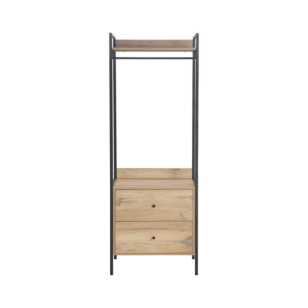 Under the top shelf, there is a rod for hanging cloth hangers. Esikuriiul HANNES 2-sahtliga 64x40xH180cm, rustik melamiin.