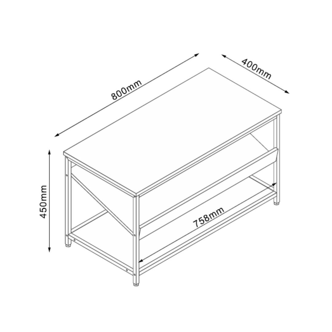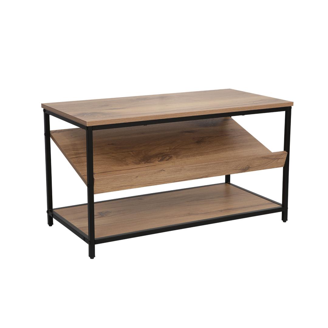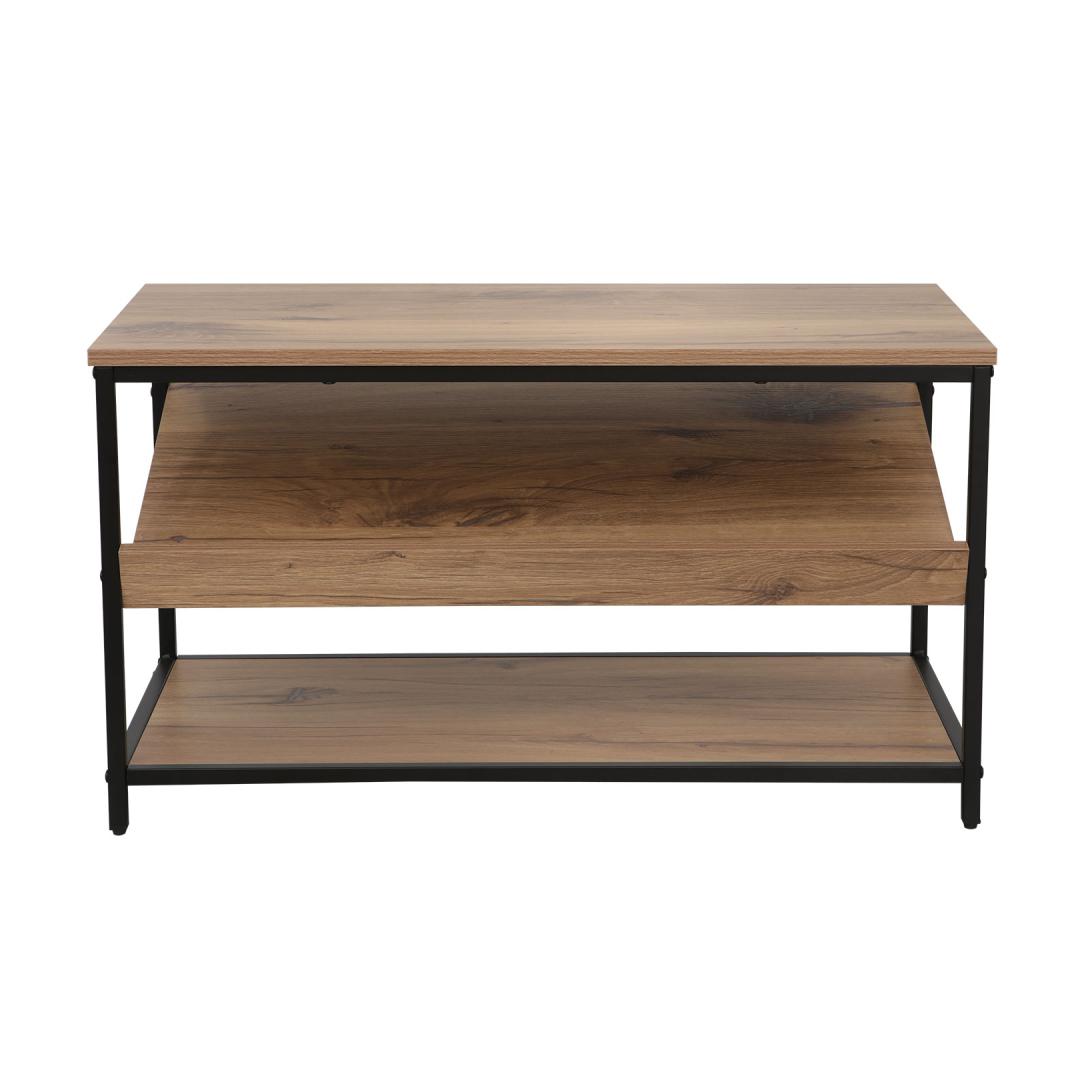 The shelf frame is made of metal and finished with black powder coating. Jalatsiriiul DIMITRA 80x40xH45cm, rustik/must.