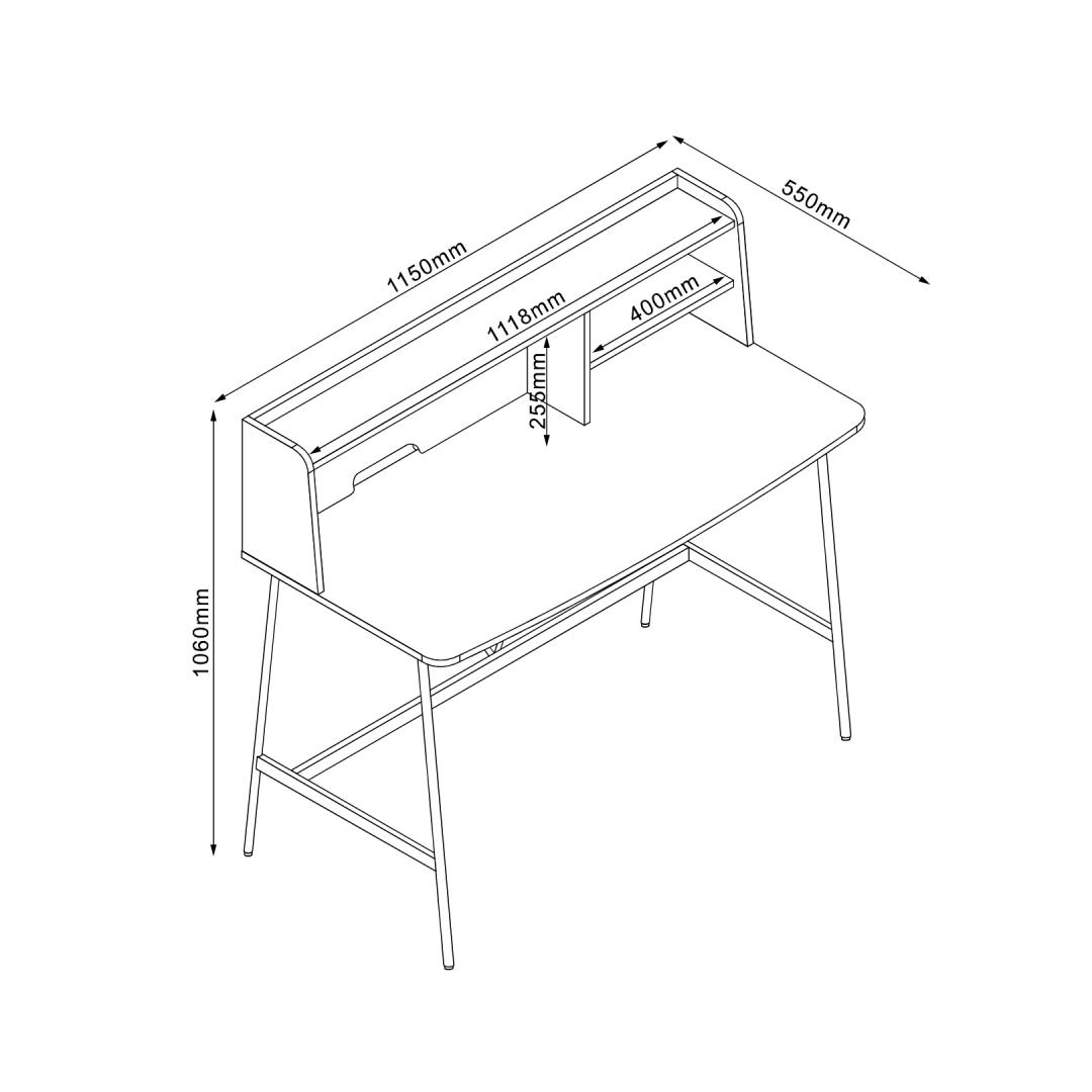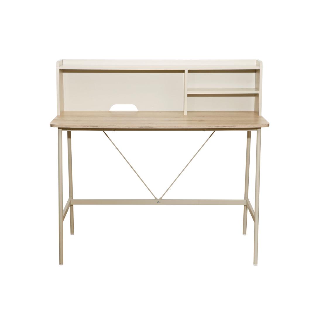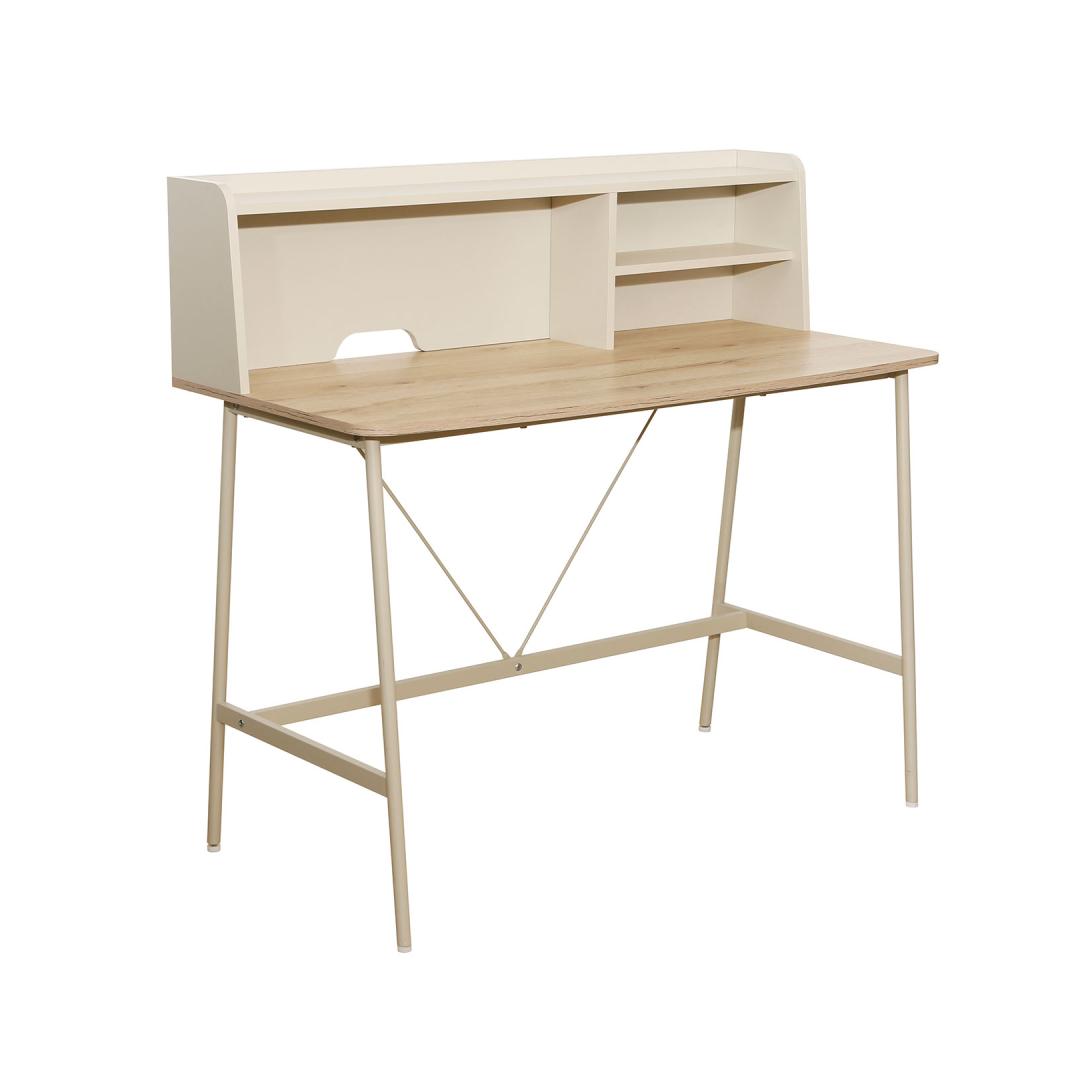 The legs and frame are made of metal and finished with beige powder coating. Kirjutuslaud LESTER riiuliga 115x55xH106cm.