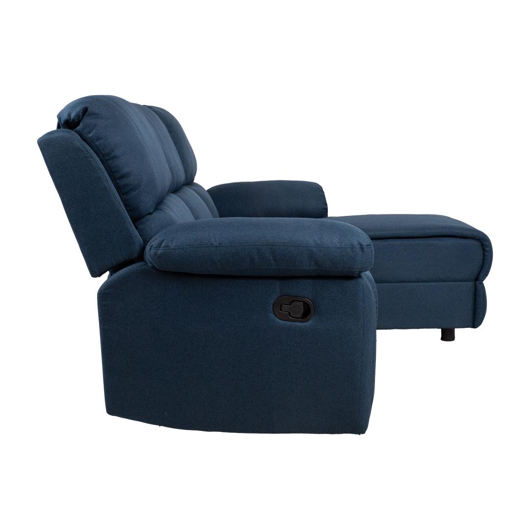 Corner sofa BERIT RC, dark blue. The position of the footrest of the sofa's outer seat is adjustable using a manual mechanism. When the footrest is raised, the backrest moves along smoothly. To raise the footrest, pull up on the lever on the outside of the chair. When the footrest is pressed down, it automatically locks into the initial position. Sofa cover material: 100% polyester fabric. Upholstery: polyurethane foam 25-28kg/m³. Frame and suspension: wood, plywood, metal, pocket springs. The sofa has plastic legs. The overall dimensions of the sofa are 214x95/160xH98cm. Seat depth 53cm, width of one seat 48cm, seat height 49cm. The height of the armrest from the ground is 62cm. Nurgadiivan BERIT PN, tumesinine. Diivani äärmise istme jalatoe asend on reguleeritav manuaalse mehhanismi abil. Jalatuge üles tõstes liigub seljatugi sujuvalt kaasa. Jalatoe tõstmiseks tõmmake tooli paremal välisküljel asuv kang üles. Surudes jalatuge alla fikseerub see automaatselt algasendisse. Diivani kattematerjal: 100% polüesterkangas. Polsterdus: polüuretaanvaht 25-28kg/m³. Karkass ja vedrustus: puit, vineer, metall, pocket vedrud. Diivanil on plastikust jalad. Diivani üldmõõdud on 214x95/160xH98cm. Istme sügavus 53cm, ühe istumiskoha laius 48cm, istme kõrgus 49cm. Käetoe kõrgus maast 62cm.