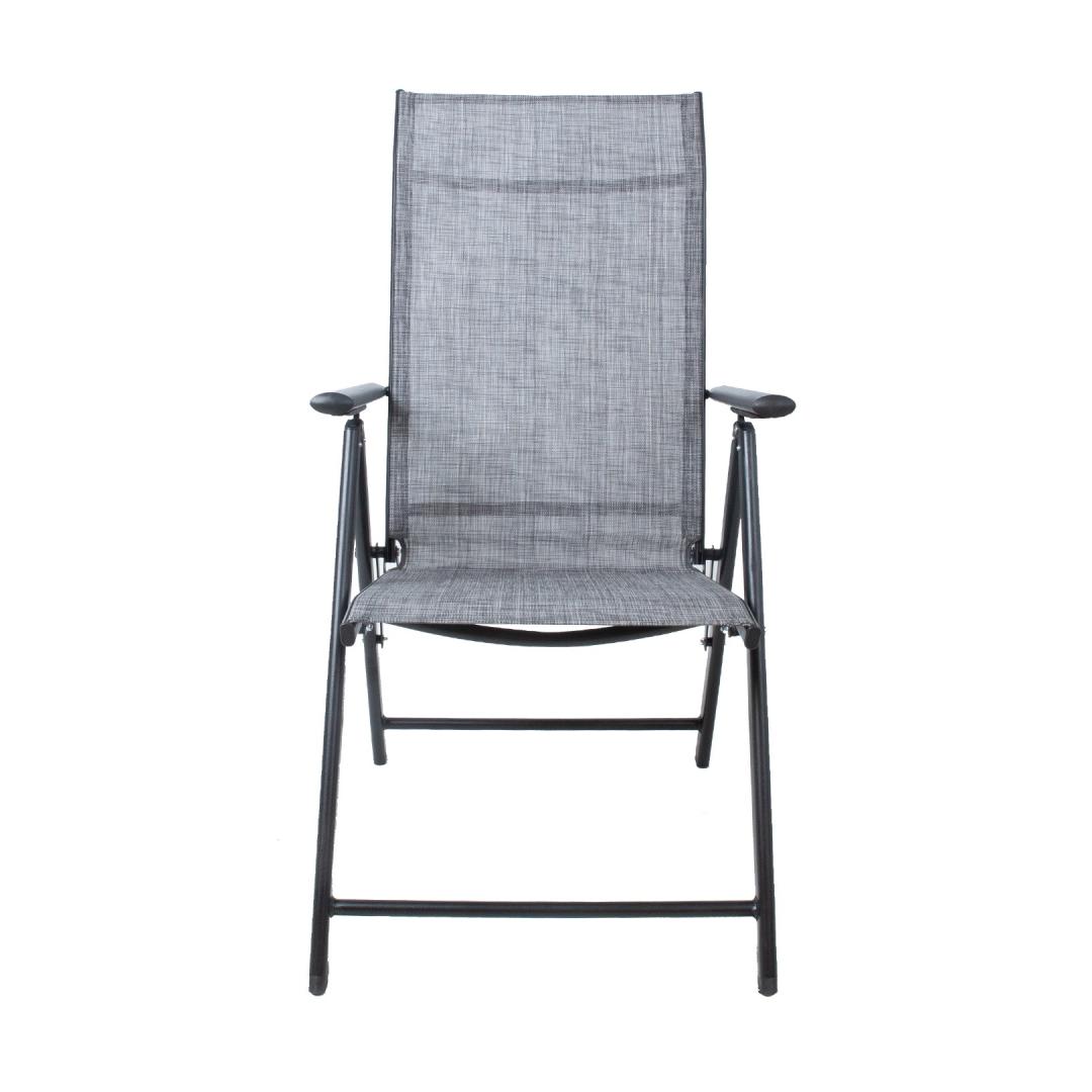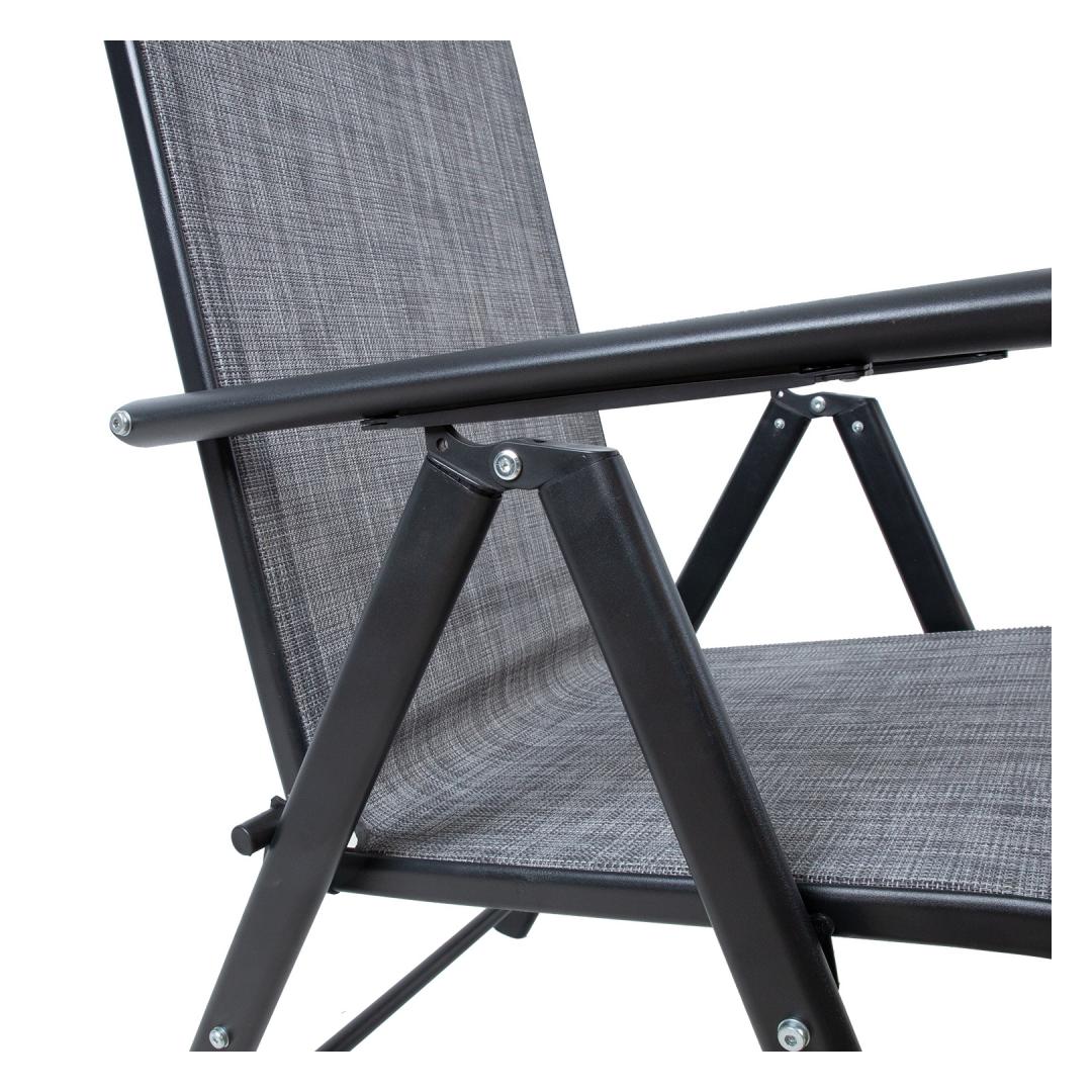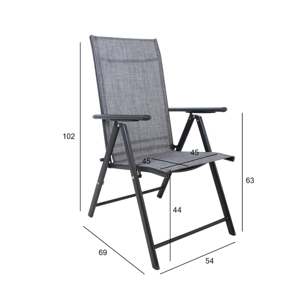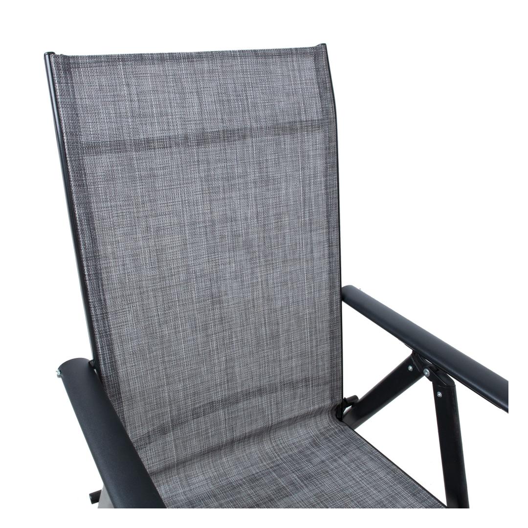 Chair DUBLIN 54x69xH102cm, grey. A folding garden chair with an adjustable backrest is a comfortable and practical choice. The textile seat of the chair allows air to pass through well, dries quickly and is easy to maintain. The frame of the chair is made of steel and finished with dark gray powder paint. To adjust the backrest, raise the armrests, select the appropriate backrest position and fix the armrests. It is possible to choose between five different positions. When folded, the chair is easy to carry or store. The dimensions of the chair when assembled are 54x81x17cm. Seat width 45cm, seat depth 45cm, seat height 44cm. The height of the backrest is 69cm, the height of the armrest is 63cm. Weight limit 100 kg.