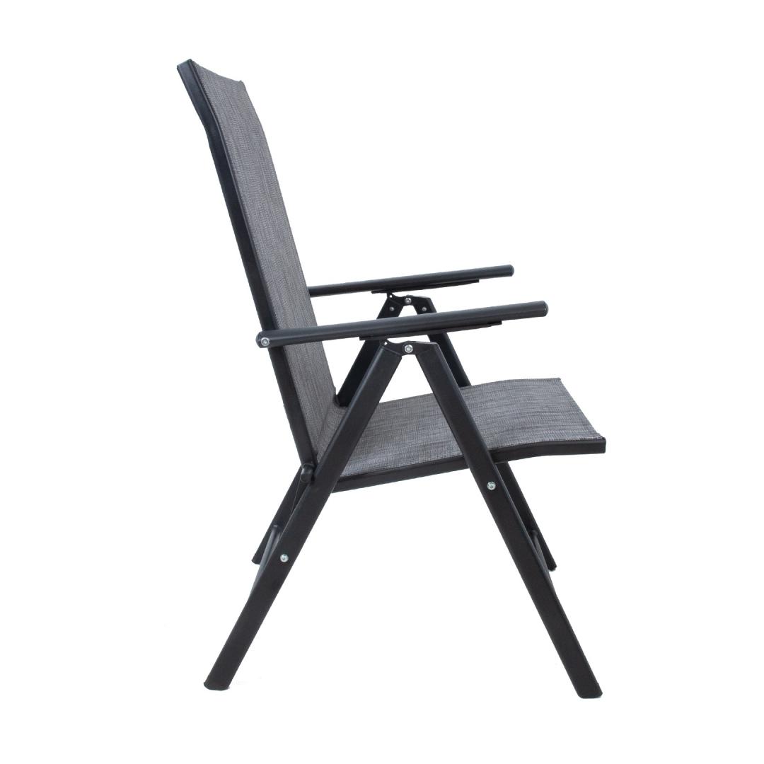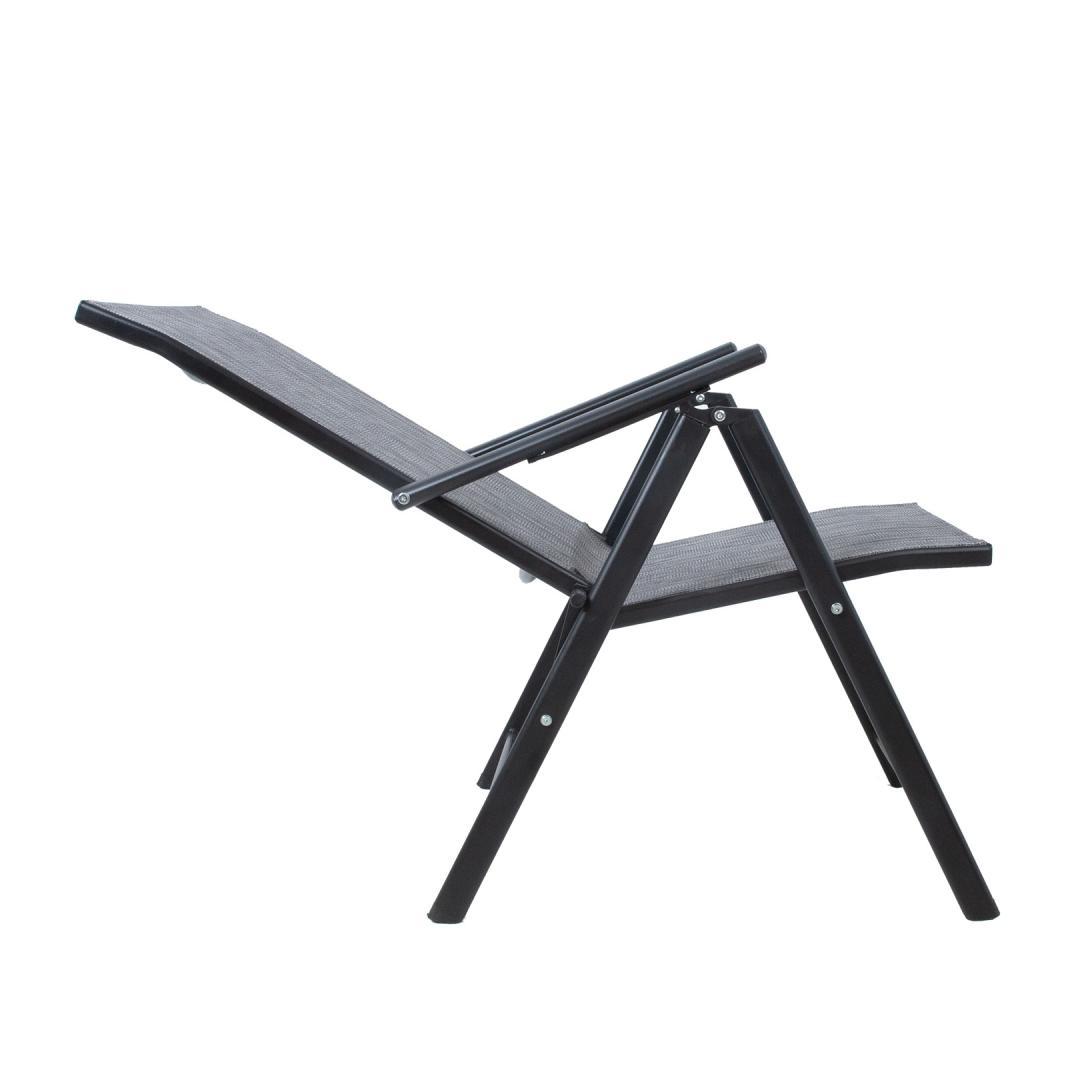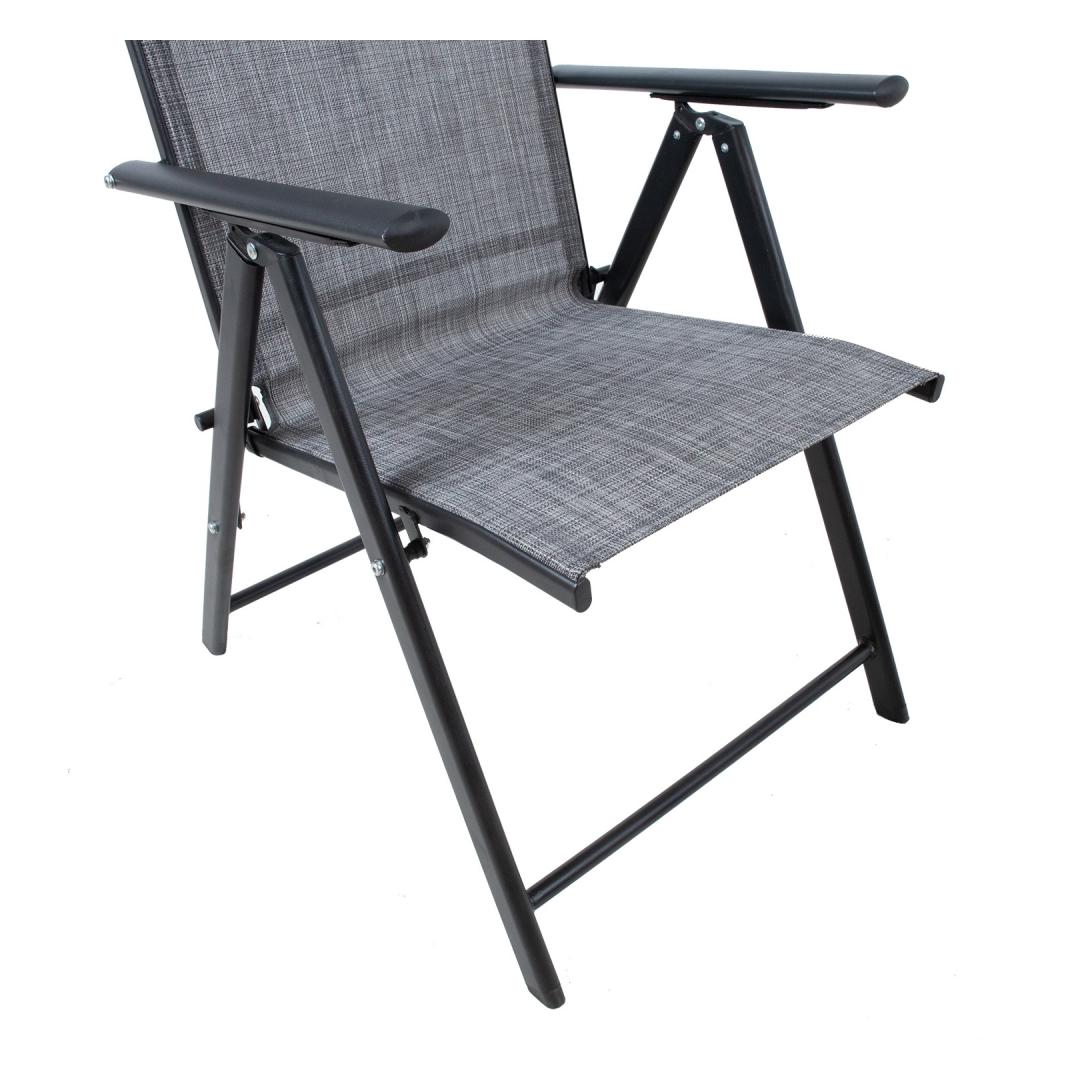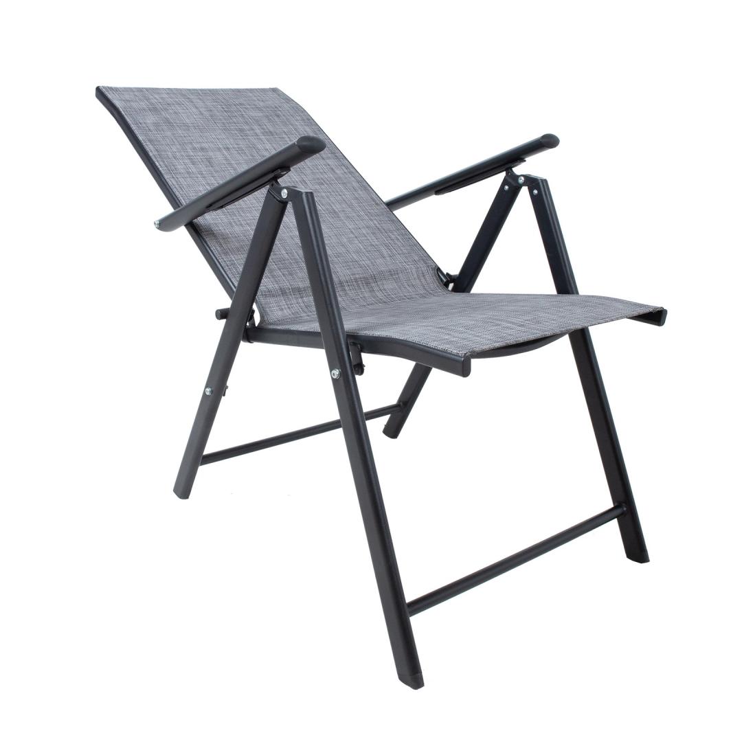 Chair DUBLIN 54x69xH102cm, grey. A folding garden chair with an adjustable backrest is a comfortable and practical choice. The textile seat of the chair allows air to pass through well, dries quickly and is easy to maintain. The frame of the chair is made of steel and finished with dark gray powder paint. To adjust the backrest, raise the armrests, select the appropriate backrest position and fix the armrests. It is possible to choose between five different positions. When folded, the chair is easy to carry or store. The dimensions of the chair when assembled are 54x81x17cm. Seat width 45cm, seat depth 45cm, seat height 44cm. The height of the backrest is 69cm, the height of the armrest is 63cm. Weight limit 100 kg.