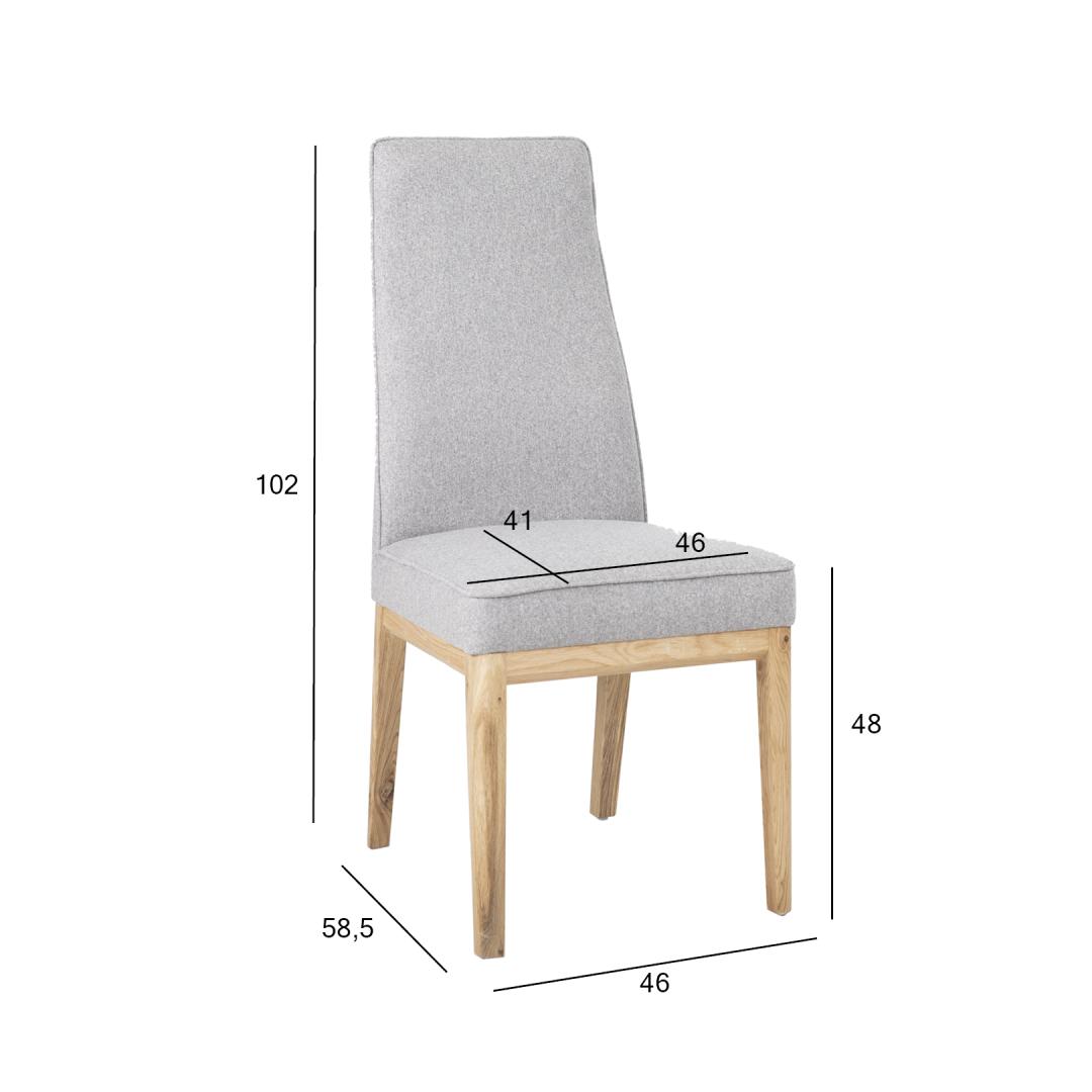 Chair PRESTON 46x58.5xH102cm, grey. The seat and back of the chair are upholstered and covered with polyester fabric. The legs and base frame are made of oak wood. Seat height 48cm. Weight limit 100 kg.