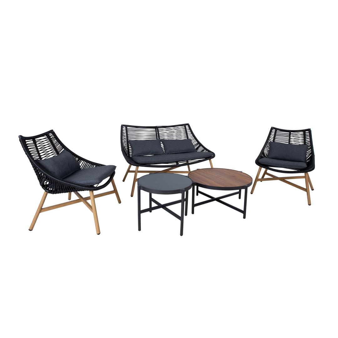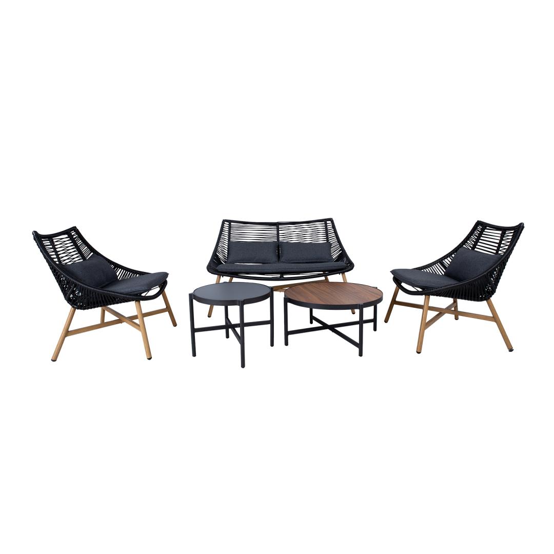 Garden furniture set HELSINKI sofa, 2 chairs and 2 tables, black