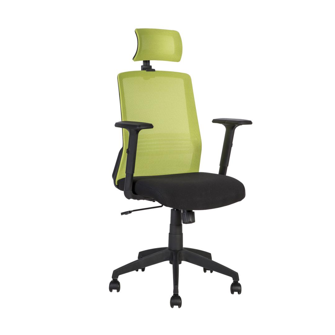 Office chair BRAVO black/green. The seat is covered with black polyester fabric. The backrest is covered with green polyester mesh fabric. The chair has a swing mechanism. The height of the seat is adjustable using a gas damper. The frame and armrests of the chair are made of black plastic. The height of the armrests is adjustable. The footrest is made of black plastic. The chair has plastic wheels, pin: 11mm. The height of the chair is 114-120cm. Product dimensions are 62x53xH114-120cm. The weight limit of the chair is 120 kg.