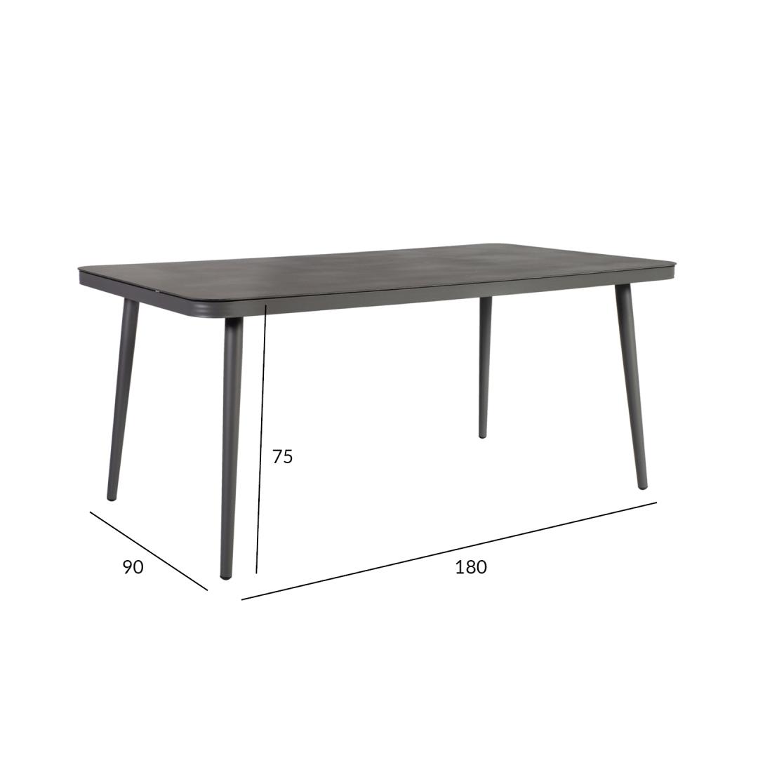 Table ANDROS 180x90xH75cm. Tabletop: 5mm gray, stone-like tempered glass. The legs and frame of the table are made of aluminum and finished with gray powder paint. STORAGE: At the end of the summer season, we recommend storing the garden furniture indoors. Clean and dry the furniture before storing. Use a cool, dry and well-ventilated room for storage.