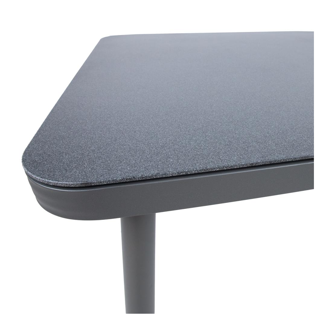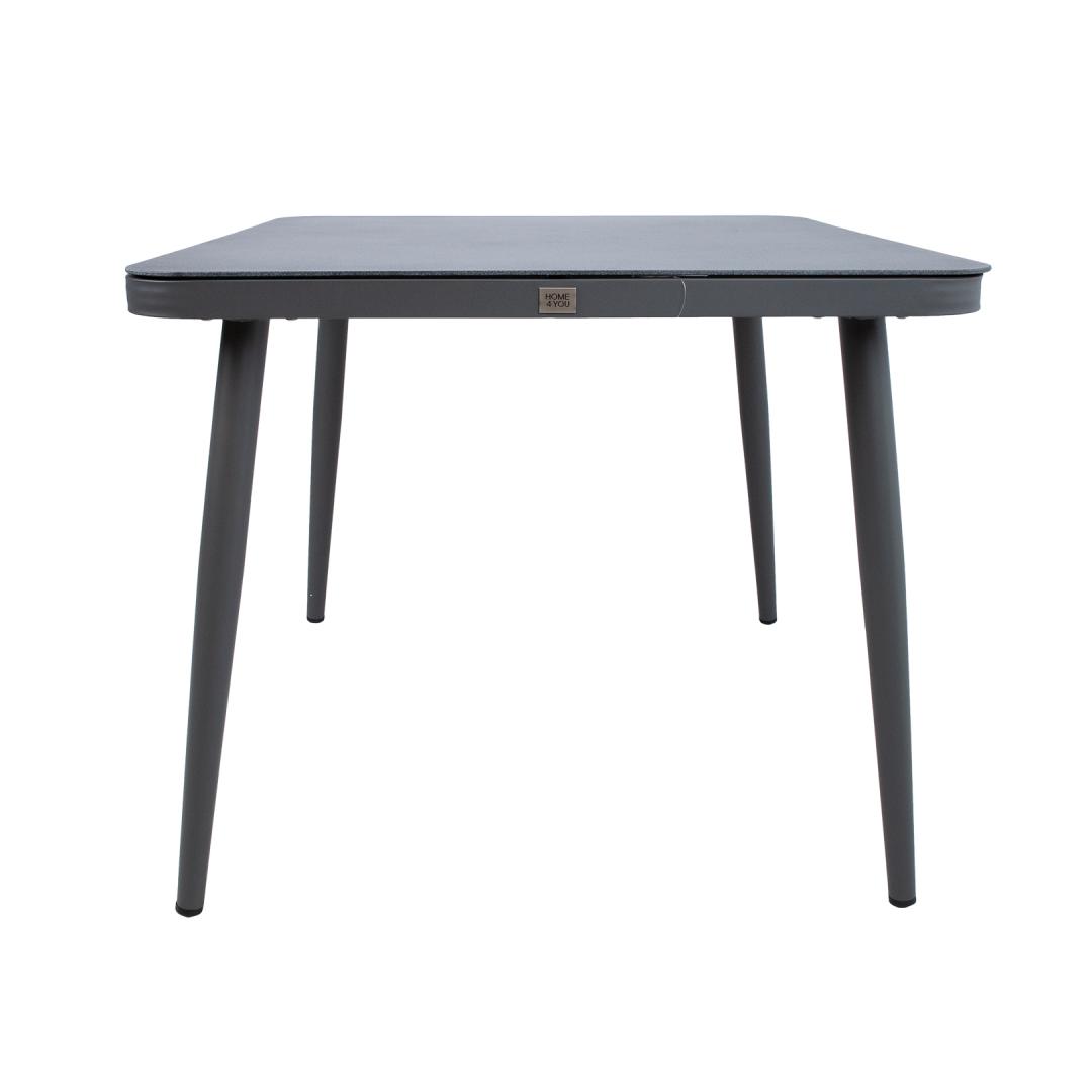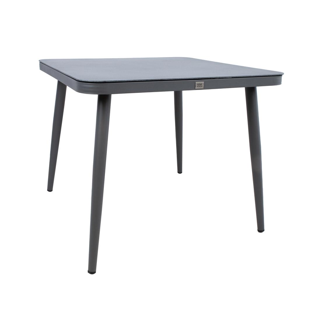 Table ANDROS 90x90xH75cm, grey. Tabletop: 5mm gray, stone-like tempered glass. The legs and frame are made of aluminum and finished with a gray powder coating. The product is durable in changing weather conditions and very easy to maintain. STORAGE: At the end of the summer season, we recommend storing the garden furniture indoors. Clean and dry the furniture before storing. Use a dry and well-ventilated room for storage.