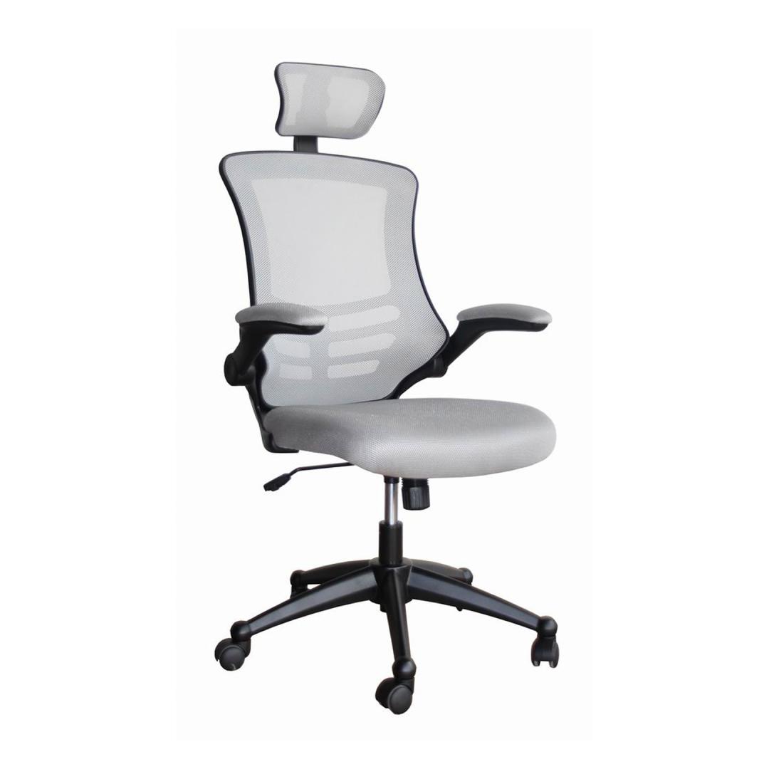 Office chair RAGUSA gray. Seat and back covered in gray polyester mesh, 30,000 Martindale. The color of the chair frame is black. The chair has a swing mechanism. The height of the seat is adjustable using a gas damper. The plastic armrests are padded with polyester mesh fabric. The armrests can be raised. The height of the headrest is adjustable. The footrest is made of black plastic. The chair has plastic wheels, pin: 11mm. Seat height is 42-49.5cm, seat depth 51cm, seat width 50cm. The dimensions of the product are 66.5x51xH117-126cm. The weight limit of the chair is 120 kg.