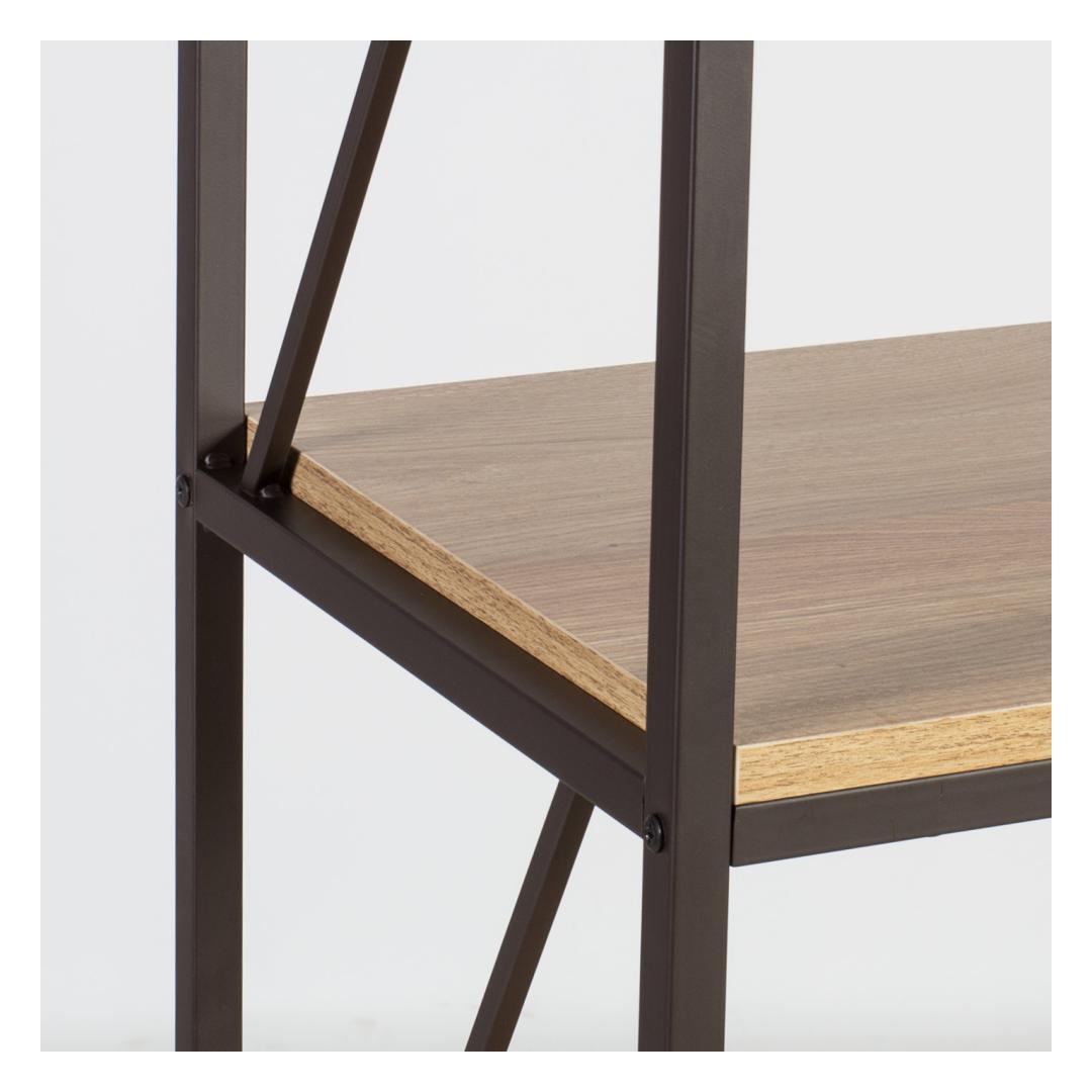 Shelf STUDY 60x40xH99cm, oak. The practical shelf can be used in different rooms for convenient storage of things. The shelves are made of melamine board. The color is oak. The steel frame is painted with brown powder paint. The dimensions of the product are 60x40xH99cm.