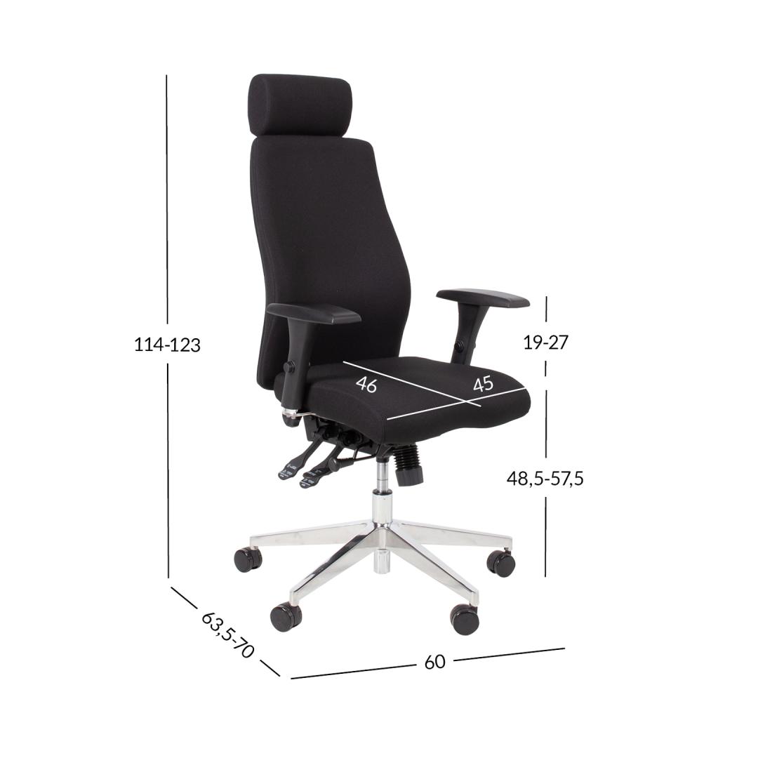 The overall dimensions of the chair are 60x63,5-70xH114-123cm, seat height 48,5-57,5cm.
