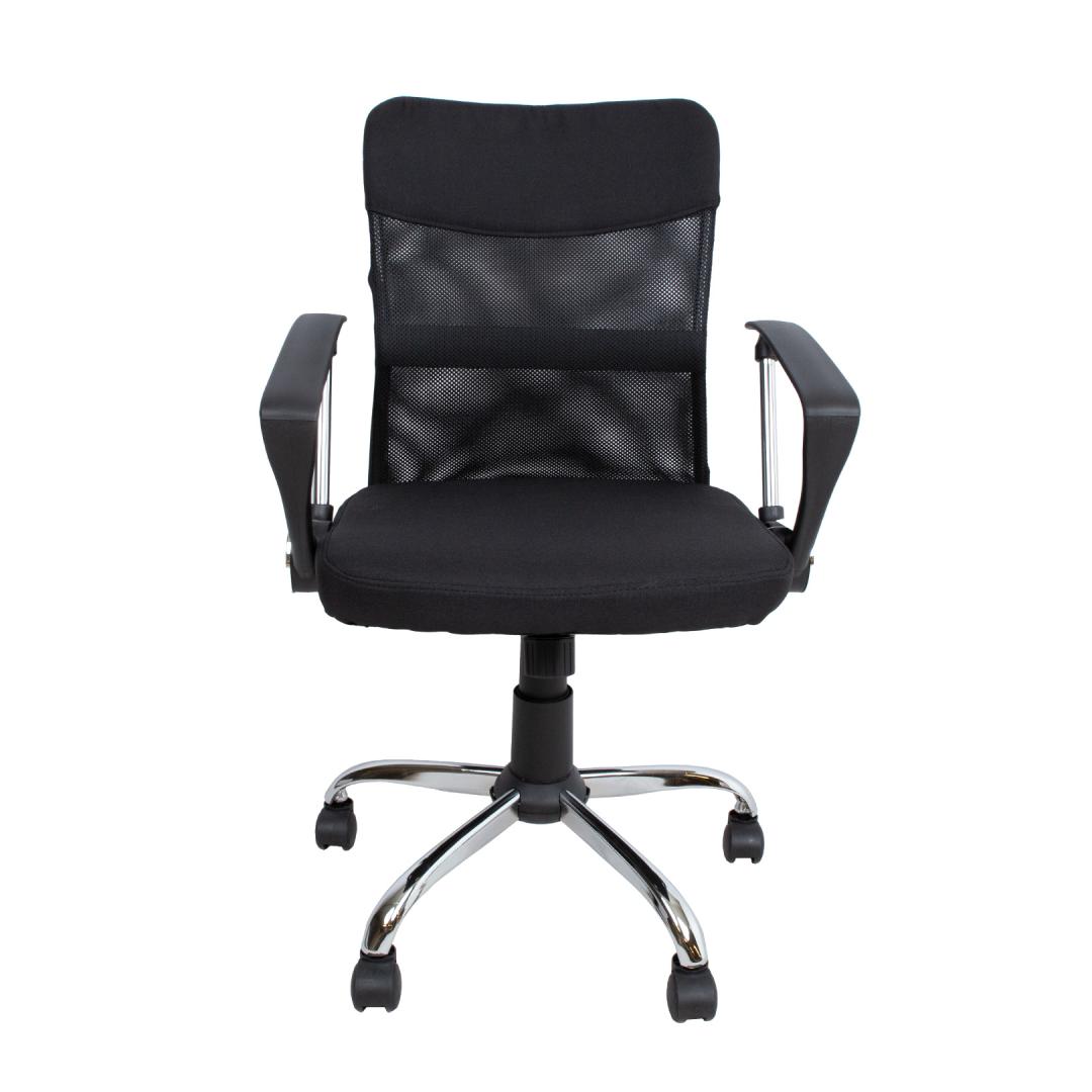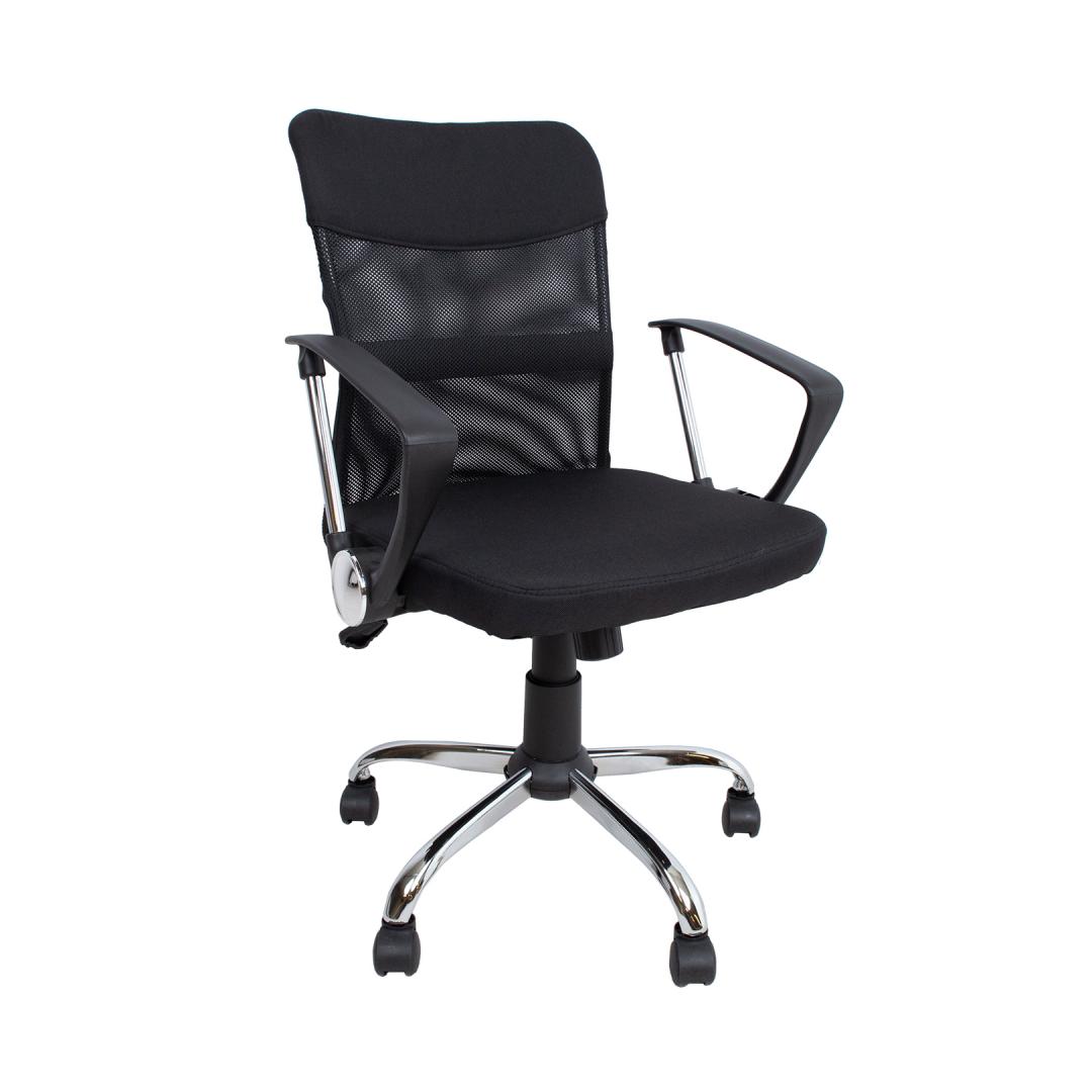 The slightly upholstered seat and upper part of the backrest are covered with polyester fabric. The middle part of the backrest is covered with polyester mesh fabric.