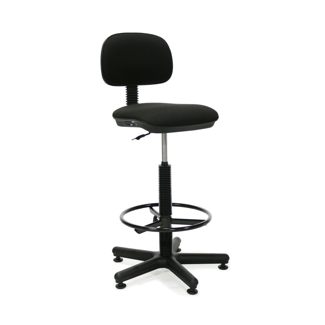 High task chair SENIOR black. The seat and backrest are covered with fabric, 100% synthetic fibres, 260g/m², 30 000 Martindale's. Pneumatic seat height adjustment. The height and angle of the backrest are adjustable. Footrest with non-slip coating. Footrest height is adjustable. The base is made of black plastic, D64,5cm. Chair height 87-118,5cm, seat height 60-84,5cm, backrest height 28-36cm. The overall dimensions are 44x39,5-42xH87-118,5cm. The weight capacity is 110kg.