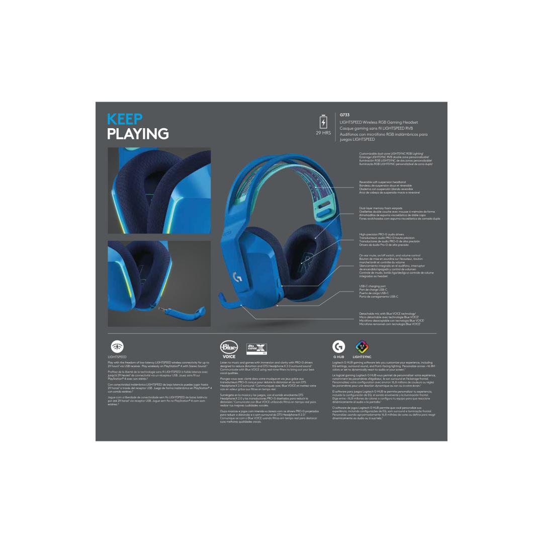 LOGITECH G G733 LIGHTSPEED Wireless RGB Gaming Headset Headset full size 2.4 GHz wireless blue