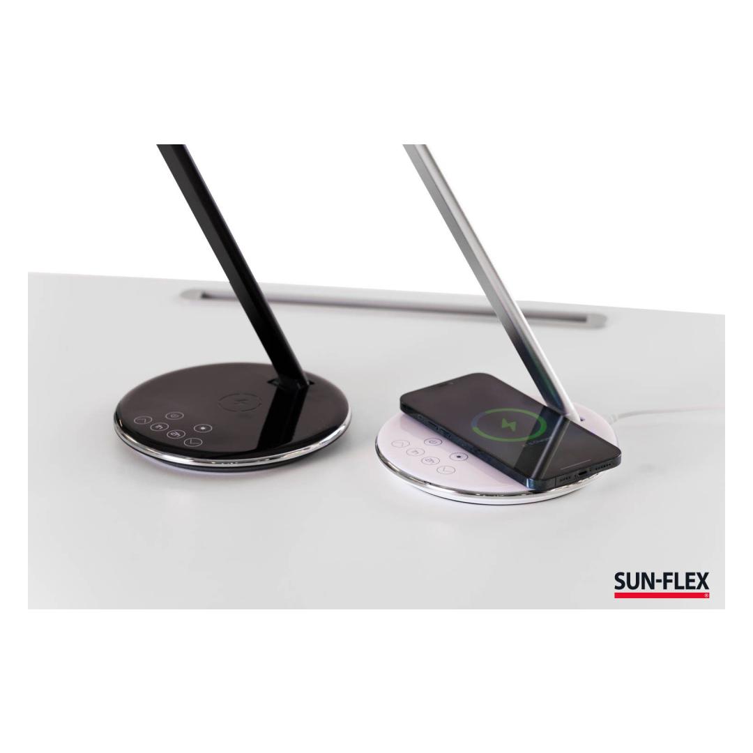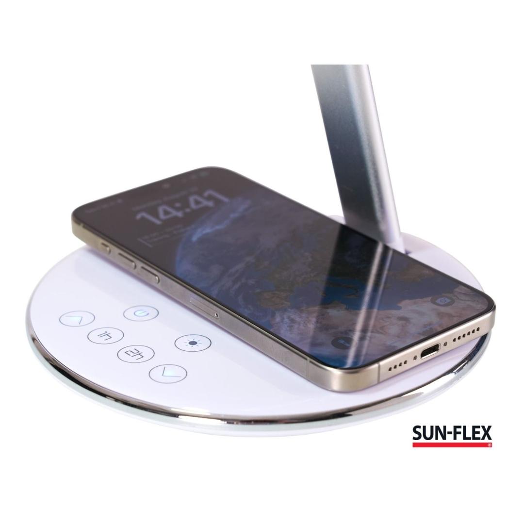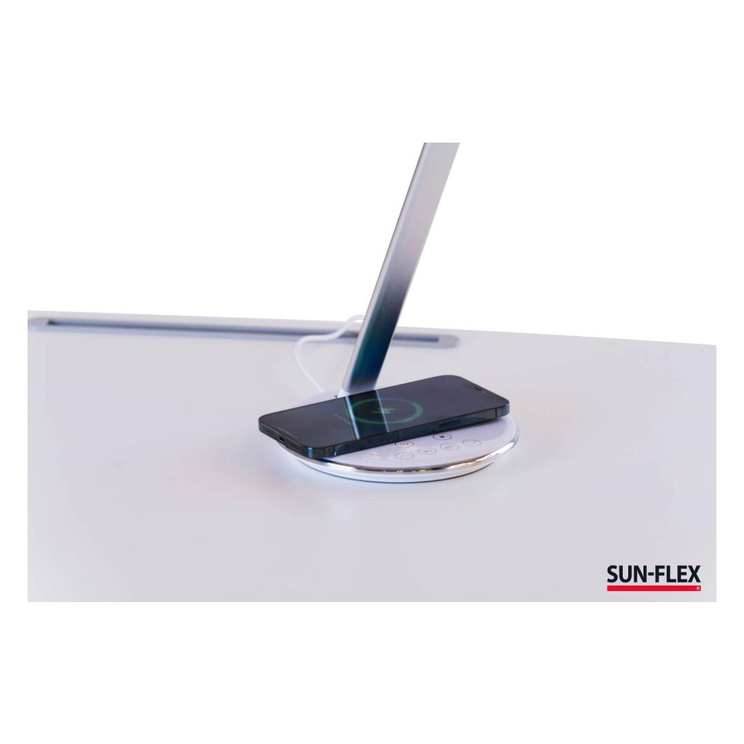 Table lamp SUN-FLEX Qlite white 103100, H-35cm, integrated LED 5W, 200-800Lux, 2800-5600K, touch sensitive, QI wireless charger