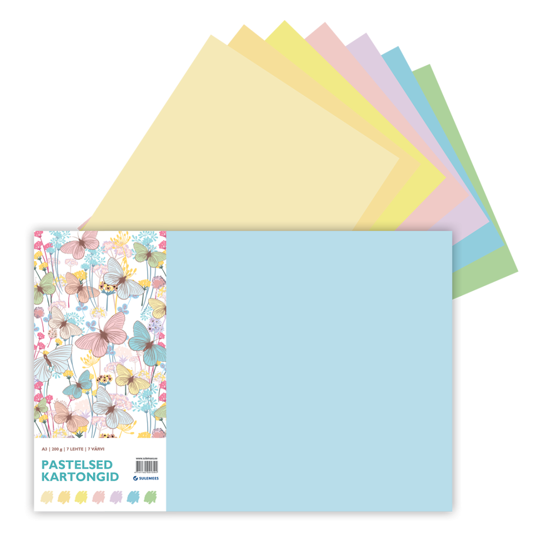 Värviline kartong A3 200gr 7x7 värvi pastelsed toonid SULEMEES