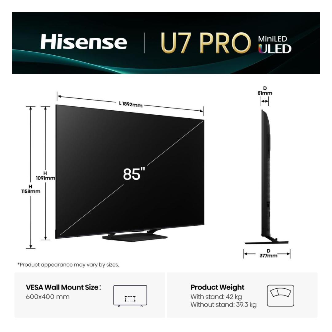TV Set HISENSE 85 " 4K Ultra HD 3840 x 2160 pixels Flat 16:9 ULED 85U7QPRO