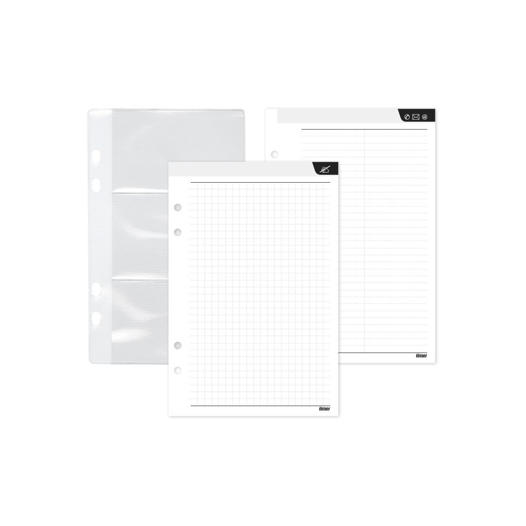Phone sheets 30 pcs (perforated, 4 holes) Note sheets 30 pcs (perforated, 4 holes) Business card pockets 5 pcs (perforated, 4 holes) Dimensions: 123 x 184 mm Suitable for the following covers: ESTO-KANTSLER Leather ESTO-KANTSLER Artificial leather