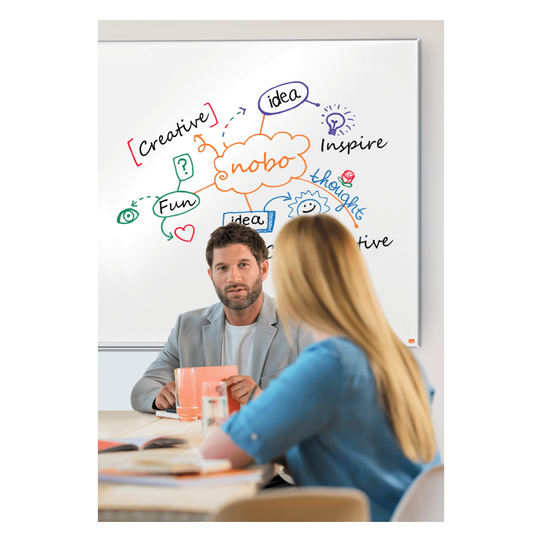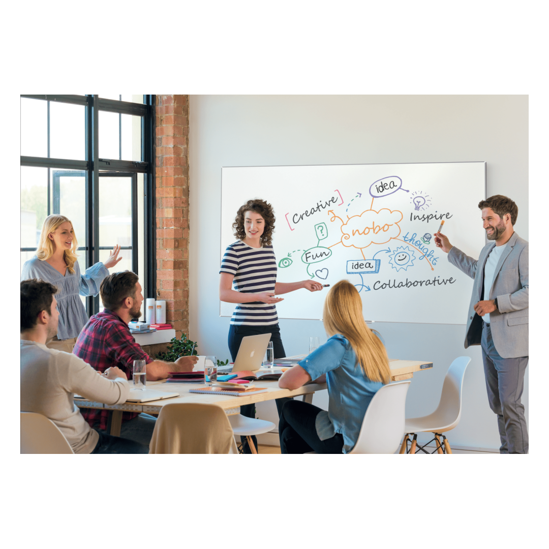 The enameled magnetic board with a modern thin and stylish frame ensures a durable writing surface. The InvisaMount™ system makes installation easy as the mounts are neatly hidden behind the whiteboard, with a stylish whiteboard marker holder to hold whiteboard markers and an eraser. The enameled magnetic board surface ensures excellent erasability and durability with frequent use.