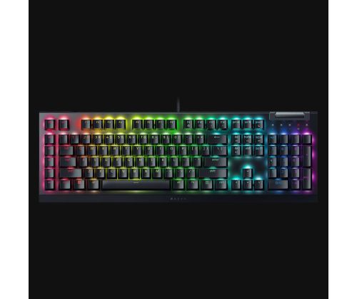 The Razer BlackWidow V4 X is a mechanical gaming keyboard equipped with Razer Chroma™ RGB. It features Razer™ Green mechanical switches, per-key lighting, along with 6 dedicated macro keys. This is an ideal choice for gamers seeking tactile and audible feedback.