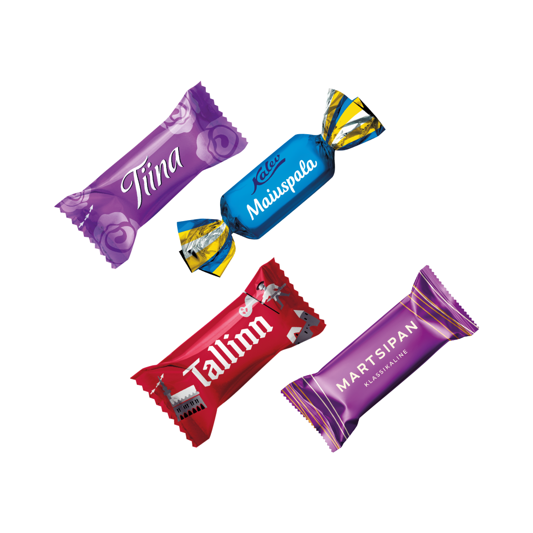 В большой упаковке конфет находятся самые любимые шоколадные конфеты Kalevi - Tiina, Maiuspala, Tallin и марципановая конфета с высоким содержанием миндаля - отличная подарочная коробка!