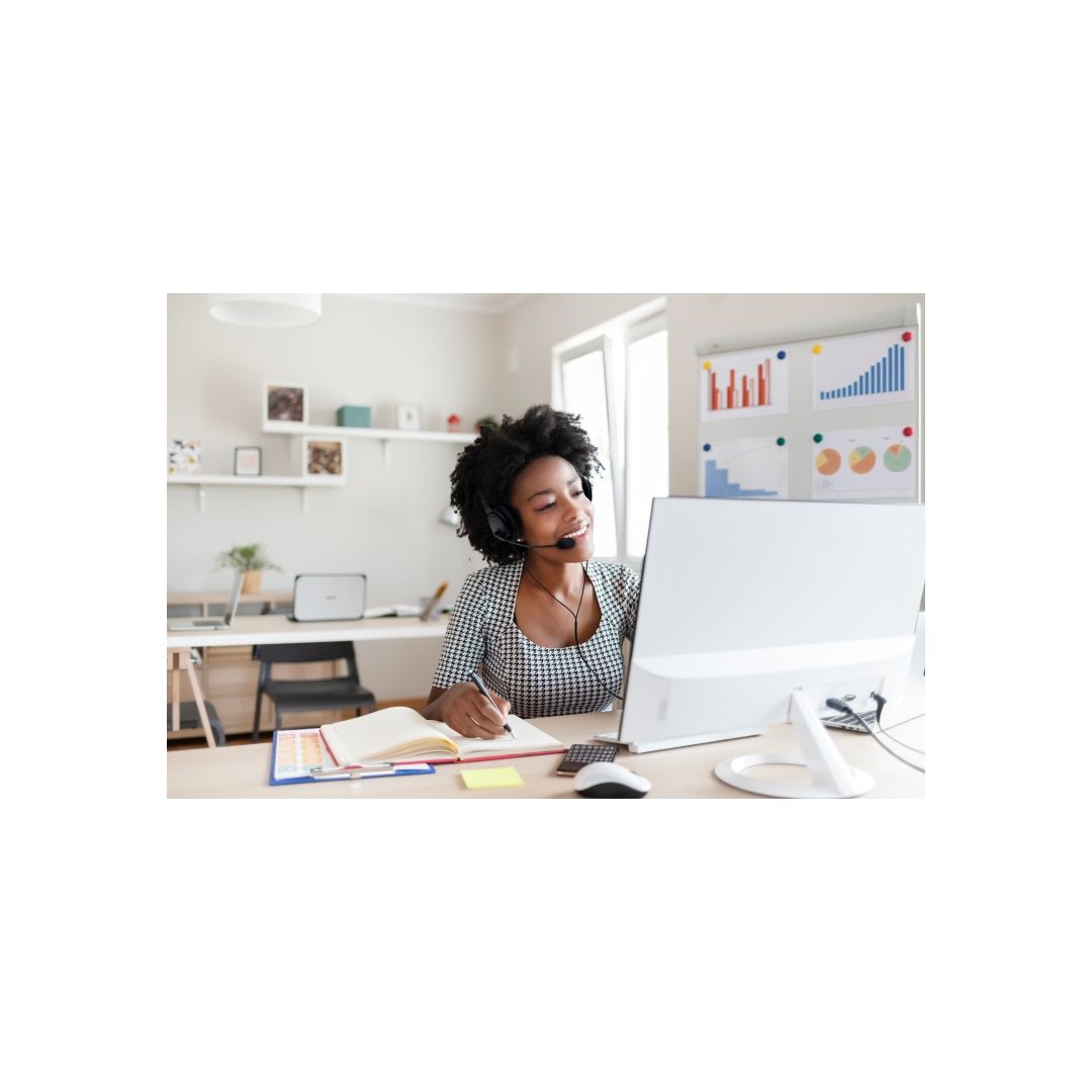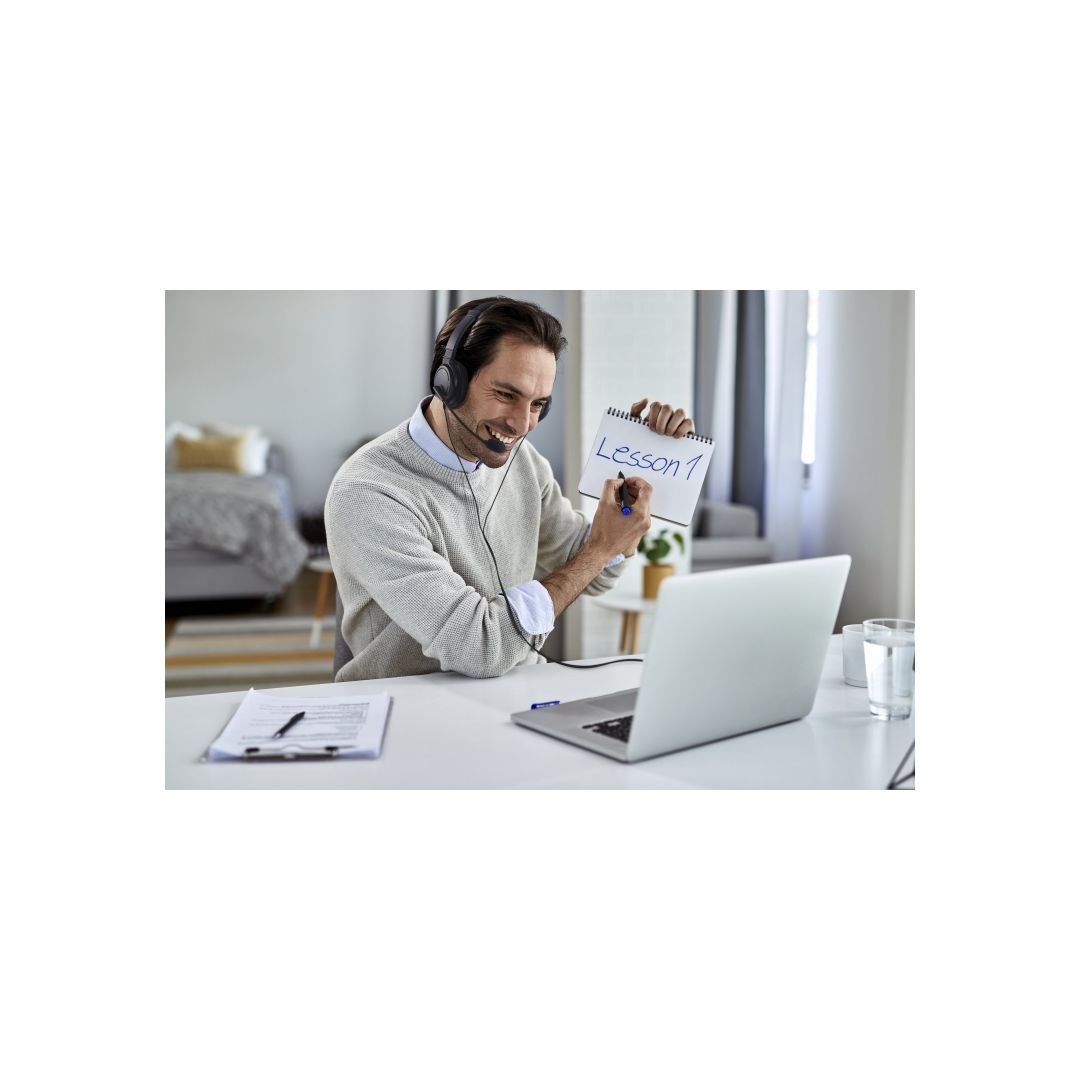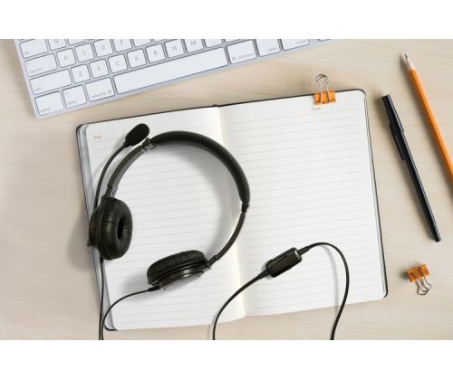 Designed to fit heads of all ages, the adjustable headband is padded and the foam ear pads are wrapped in a soft leatherette cover to provide hours of comfortable use. The flexible boom-style microphone can be rotated up to 270 degrees. Robust design with durable materials, including a six-foot cord that allows for flexible movement make this headset ideal for learning environments, call centers, business professionals, and recreational gamers.