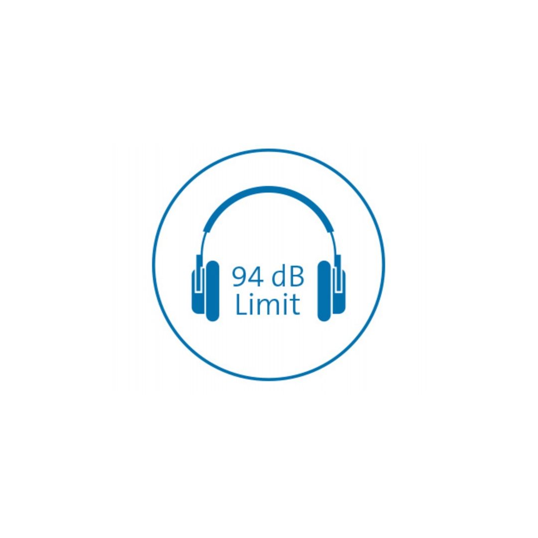 Safe listening limit sets the maximum output to 94db to protect ears from hearing loss associated with excessive loudness.