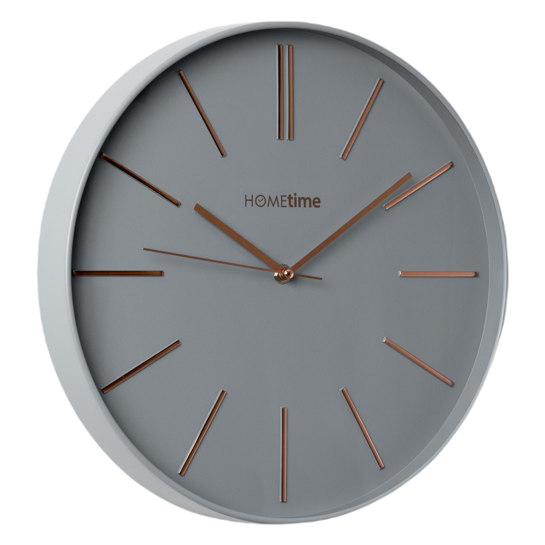 • Круглые настенные часы в серой рамке • Серый фон • Золотые арабские цифры • Диаметр 30см