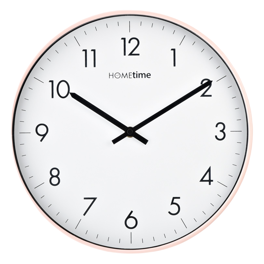 Настенные часы с арабскими цифрами, рамка из пластика розового цвета, толщина рамки 4,5 см, циферблат белый и черный, циферблаты бесшумно движутся.