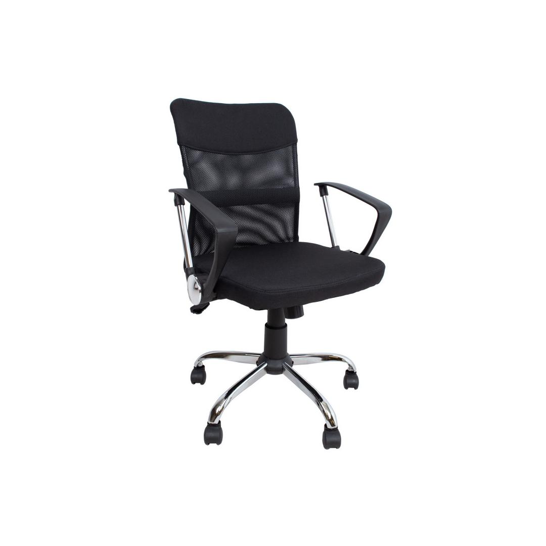 • Сиденье кресла с мягкой подкладкой • Высота сиденья регулируется с помощью газовой пружины • Средняя часть спинки покрыта сетчатой тканью из полиэстера. • Высота стула 93-103см, ширина сиденья 47см • Размеры изделия 57x57xH93-103см