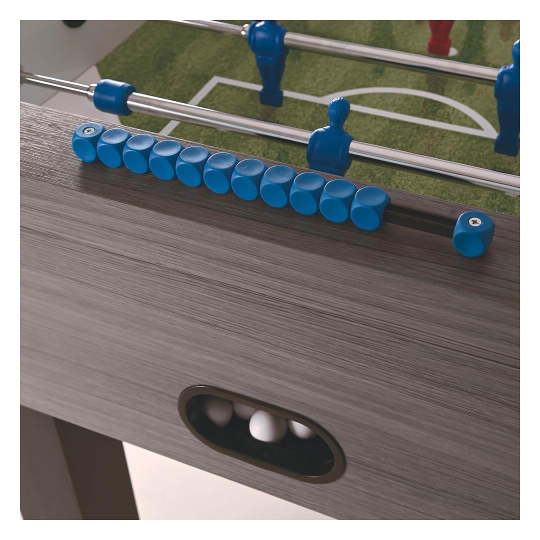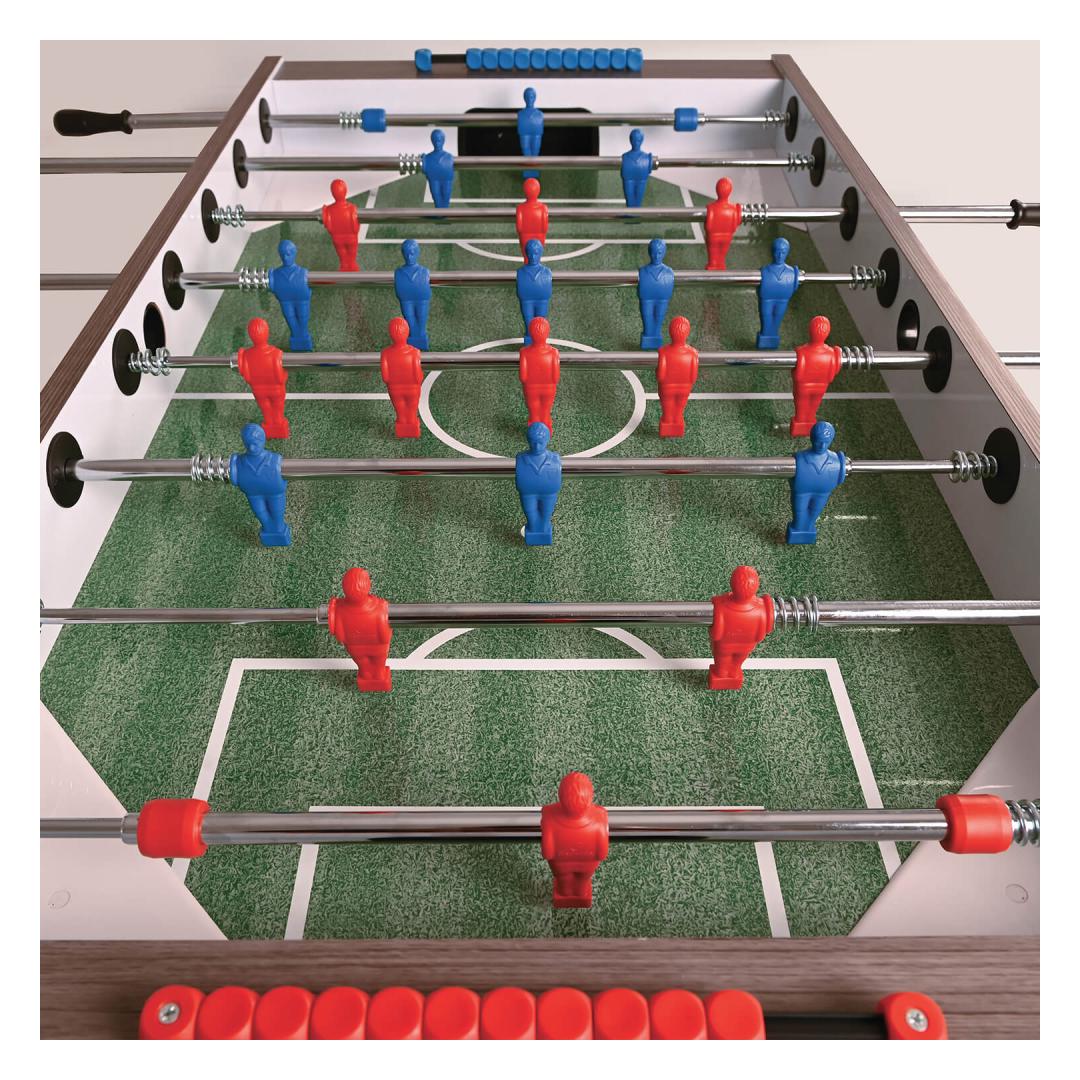 Элегантная модель с отделкой цвета серого дуба, подходящая по стилю к любому помещению. Высокое качество и очень прочная конструкция делают F-100 идеальным столом для развлечения взрослых и детей. Прочный корпус из МДФ толщиной 25 мм покрыт меламиновым покрытием. Цвет: дуб серый. Квадратные ножки (10 х 10 см) из МДФ толщиной 15 мм с меламиновым покрытием. Черный цвет. Стальные переходные стержни толщиной 2 мм с хромовым покрытием толщиной 15 микрон для защиты от ржавчины. Длительный результат. Стальные роликовые подшипники значительно повышают скорость игры, уменьшая нагрузку на запястья игроков. Небьющиеся пластиковые красные и синие игроки отлиты на удилищах. Полностью вращающийся (360°) вратарь облегчает подсчет очков. Детская площадка МДФ с меламиновым покрытием. Особый эффект «дерна» создает впечатление игры на футбольном поле. Скошенные углы позволяют правильно вернуть мяч. Быстрый и легкий доступ к мячу через любой выход за воротами. В комплекте 3 белых мяча "Стандарт". F-100 соответствует гармонизированным европейским нормам безопасности EN 71-1, 71-2, 71-3 и 71-9. Упакован в коробку с прочной защитой из полистирола для предотвращения повреждения стола Вес: 55 кг Размеры упаковки: 120 x 66 x 22 см Производитель Garlando, Италия Соответствие: EN71