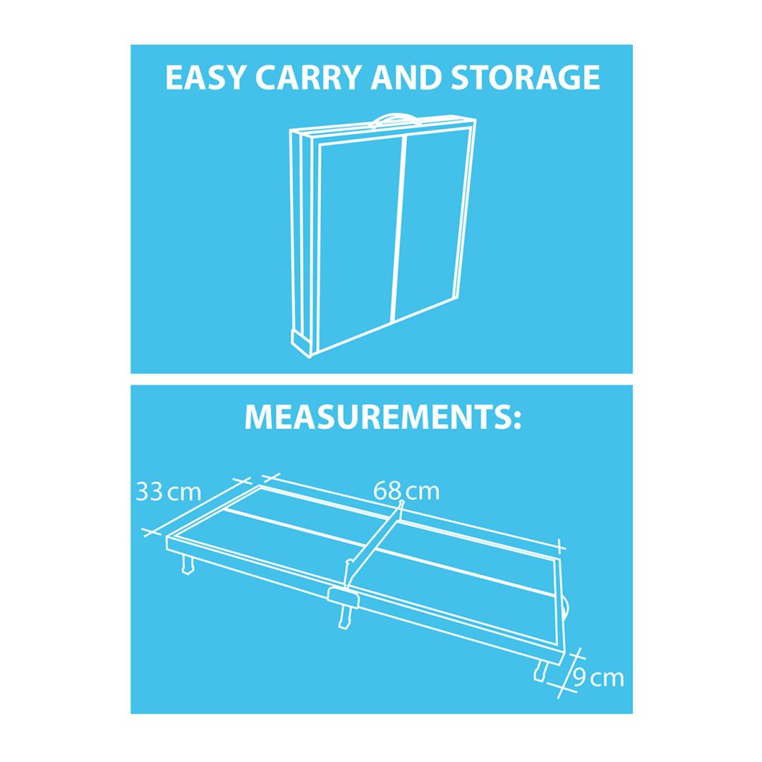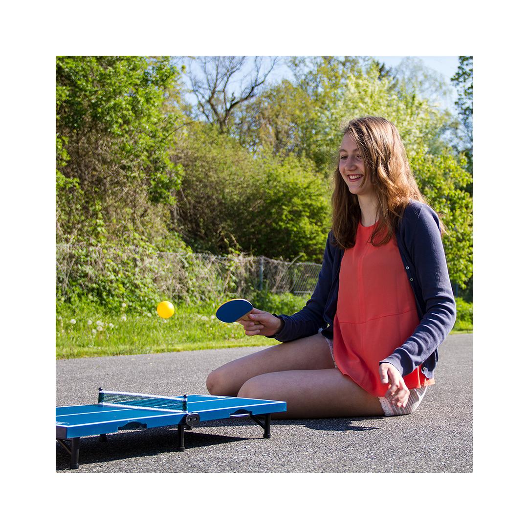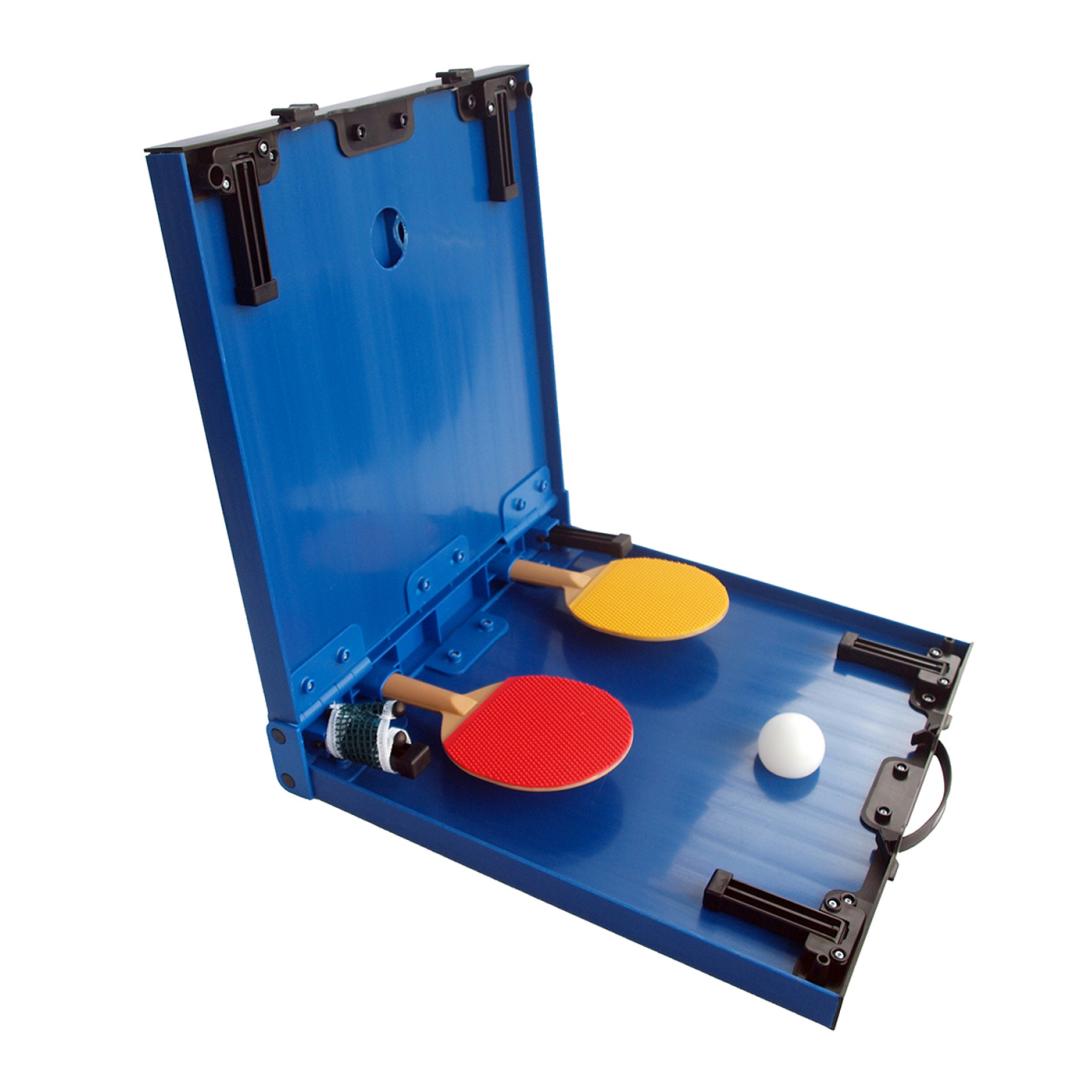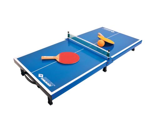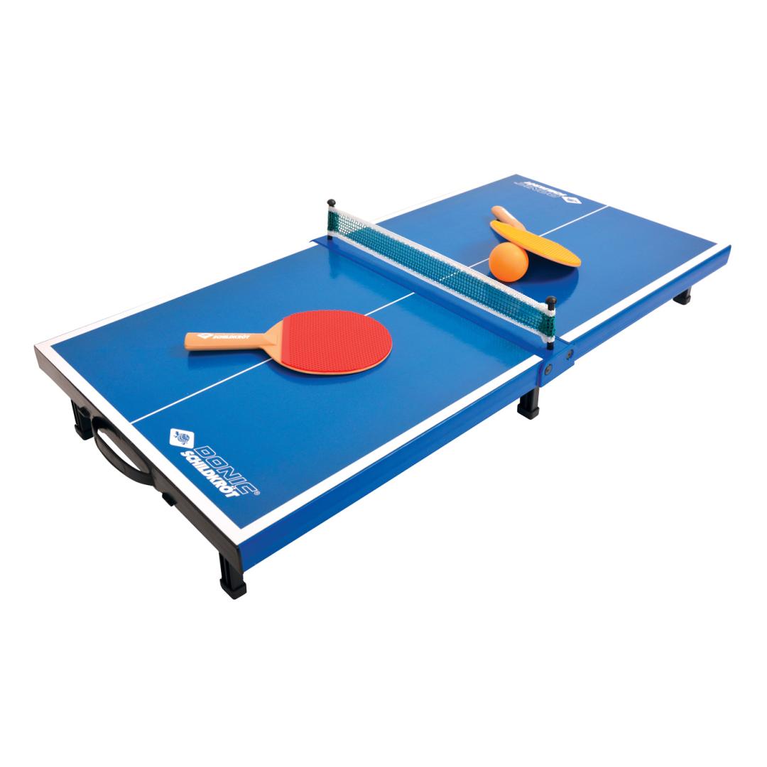 Столовый набор Donic Mini – идеальное решение для всех возрастных групп. Стол легко и удобно складывается, а все аксессуары помещаются внутрь стола. В комплект входят: мини-стол для настольного тенниса, две мини-ракетки из ПВХ, полиэтиленовый мяч и сетка. Размеры раскладного столика: 68 х 33 х 9 см. Вес 3 кг.