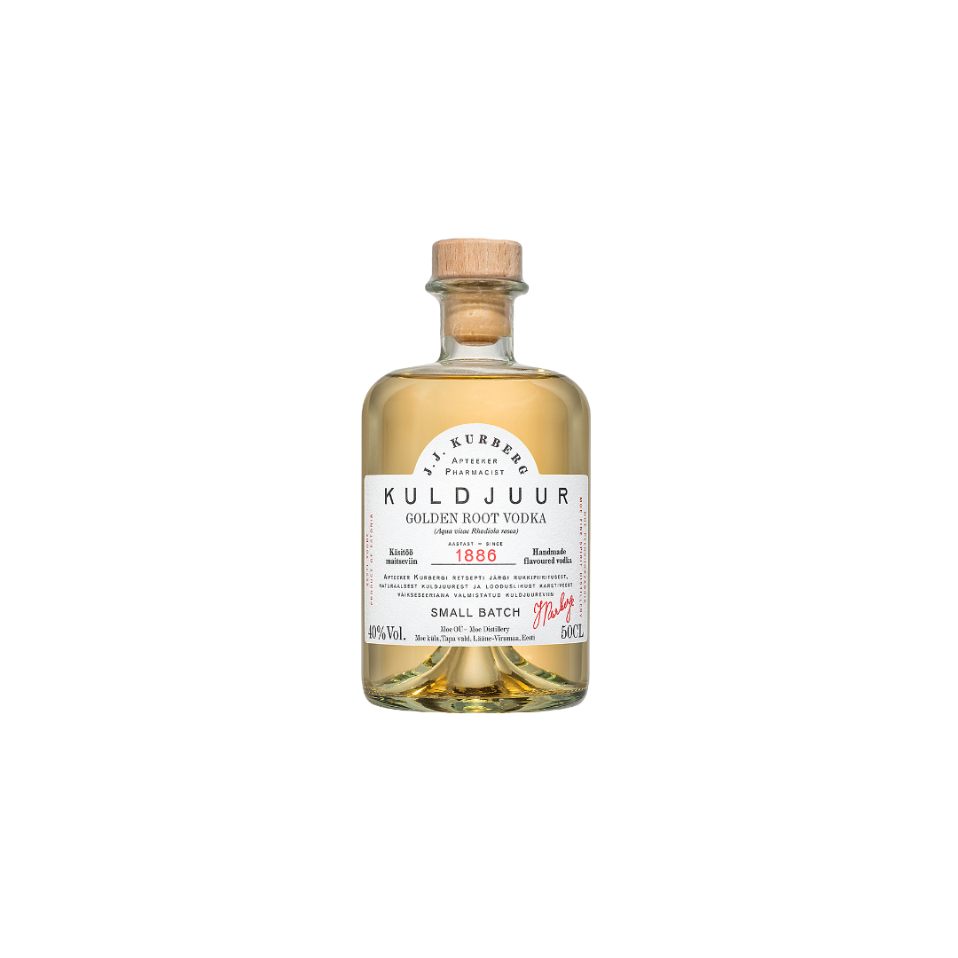 Водка Moe Kuldjuure — это ароматизированная водка, приготовленная вручную из ржаного спирта, натурального золотого корня и природной карстовой воды по рецепту аптекаря Курберга. Водка производится из 100% отечественного сырья.