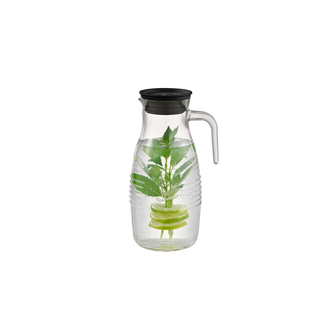 Стеклянный кувшин со встроенным ситечком и крышкой с силиконовым уплотнителем. Можно мыть в посудомоечной машине.