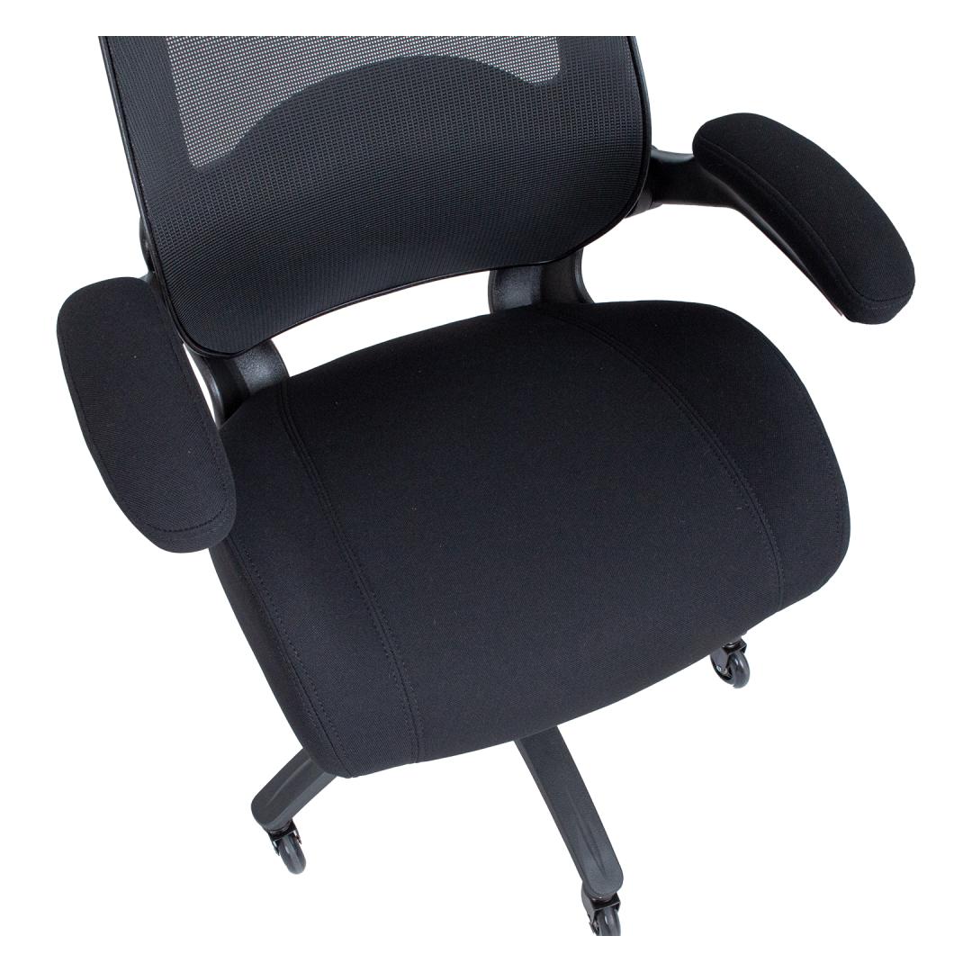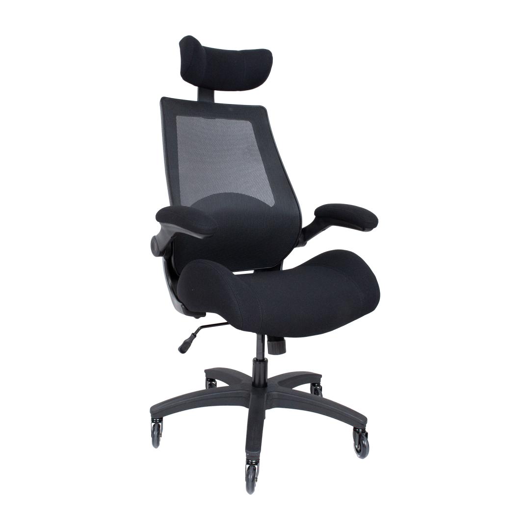 Рабочий стул МИЛЛЕР черный. Обтекаемое сиденье удобного офисного кресла изготовлено из прочного пенополиуретана. Сиденье и спинка обтянуты полиэстеровой тканью стоимостью Martindale 30 000. Поясничная часть спинки поддерживается мягкой подушкой за спинкой, повторяющей форму тела. Кресло имеет поворотный механизм. Жесткость качания регулируется в зависимости от веса сидящего. Высоту сиденья можно регулировать с помощью газовой пружины. Пластиковые подлокотники имеют мягкую подкладку и покрыты полиэфирной тканью. Подлокотники можно поднять. Подголовник свободно наклоняется, высота подголовника регулируется. Пятиугольная подножка кресла изготовлена из прочного черного пластика. Кресло оснащено нейлоновыми колесами, позволяющими экономить пол. Габаритные размеры стула 70х71хВ121-131см. Ограничение по весу 120 кг. Töötool MILLER must. Mugava töötooli voolujooneline iste on vormitud vastupidavast polüuretaanvahust. Iste ja seljatugi kaetud polüesterkangaga, Martindale'i väärtus 30 000. Selja nimmeosa toetab kehakuju järgiva vormiga pehme padi seljatoe taga. Toolil on kiikemehhanism. Kiikejäikus on reguleeritav vastavalt istuja kaalule. Istme kõrgus reguleeritav gaasamordi abil. Plastikust käetoed on polsterdatud ja kaetud polüesterkangaga. Käetugesid on võimalik üles tõsta. Peatugi on vabalt kallutatav, peatoe kõrgus on reguleeritav. Tooli 5-haruline jalarist on valmistatud tugevast mustast plastikust. Toolil on põrandat säästvad nailonrattad. Tooli üldmõõdud on 70x71xH121-131cm. Kaalupiirang 120kg.